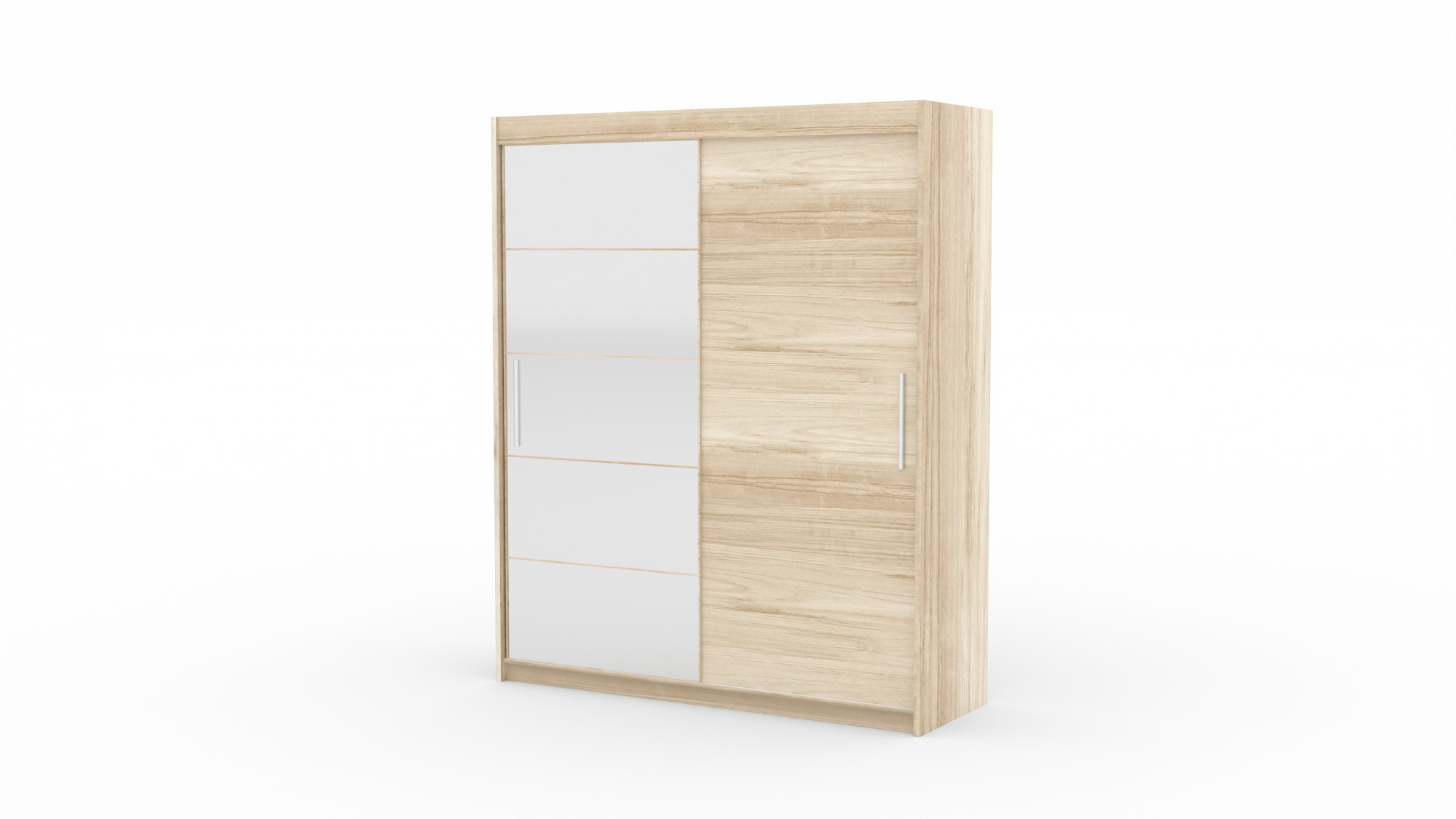 A tolóajtós és tükrös ESTI ruhásszekrény ideális módja a tér rendezésének. A bútor tágas polcokkal és egy rúddal van felszerelve, amelyre felakaszthatja a ruhákat, öltönyöket, felsőruházatot vagy ingeket. Az elülső oldalra tükröket rögzítettek, amelyek optikailag megnövelik a teret és varázslatos bájt kölcsönöznek neki. Annak köszönhetően, hogy a szekrény tolóajtós, nem kell további helyet biztosítani az ajtók kinyitásához, ami ideális megoldássá teszi egy kis szoba vagy keskeny előszoba számára.