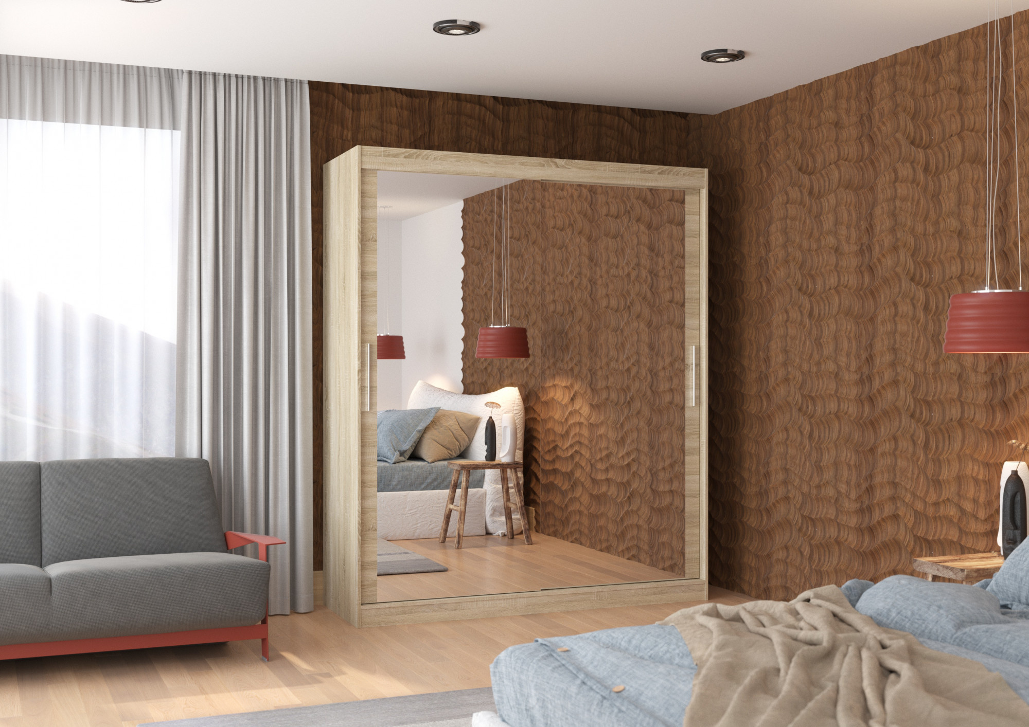 Tolóajtós szekrény tükörrel ETTORE 180 Sonoma+Sonoma