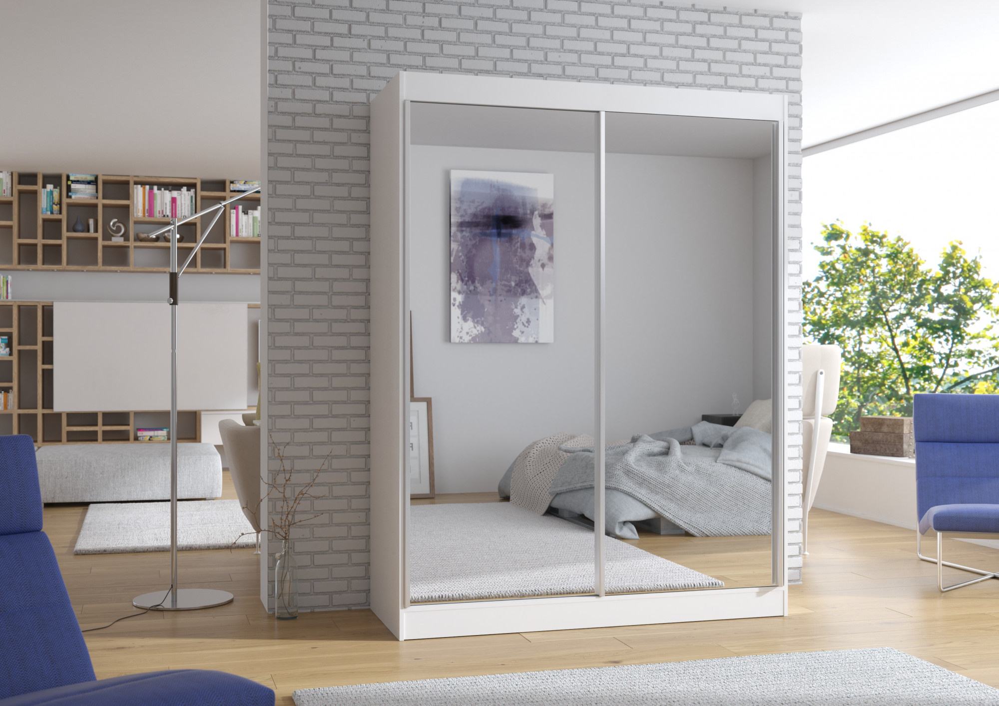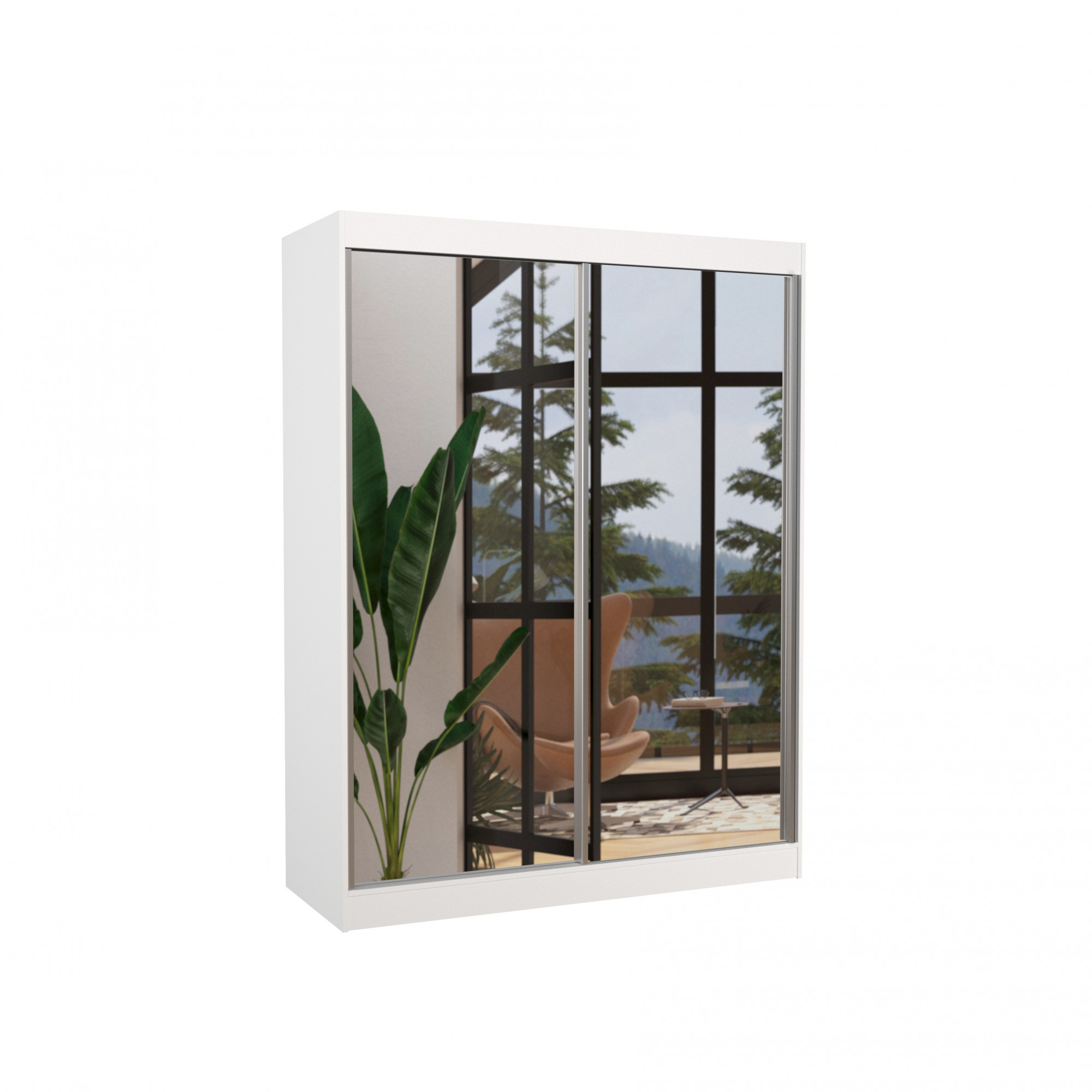 Tolóajtós szekrény tükörrel FLOREST 150 Fehér+Fehér