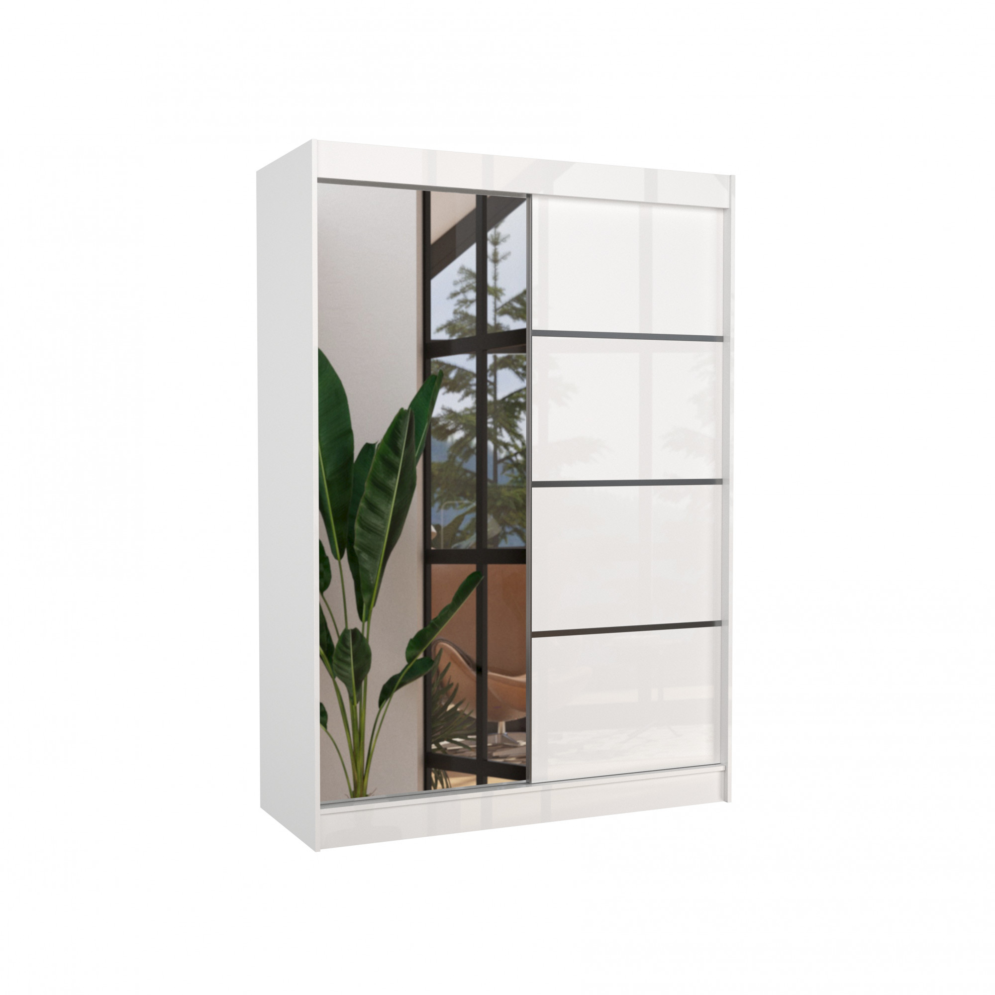 Tolóajtós szekrény tükörrel GILTON 150 Fehér+Fehér
