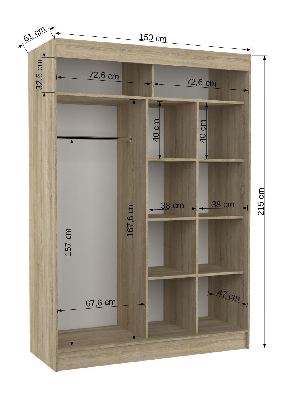 Tolóajtós szekrény tükörrel GILTON 150 Sonoma+Sonoma