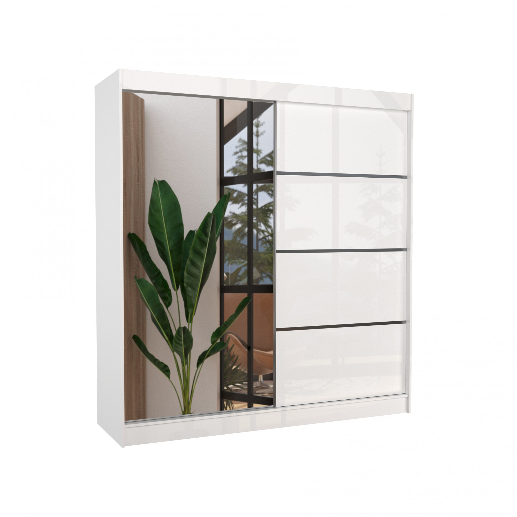 Tolóajtós szekrény tükörrel GILTON 200 Fehér+Fehér