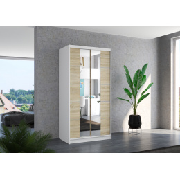 Tolóajtós szekrény tükörrel KSAWER 100 Fehér+Sonoma