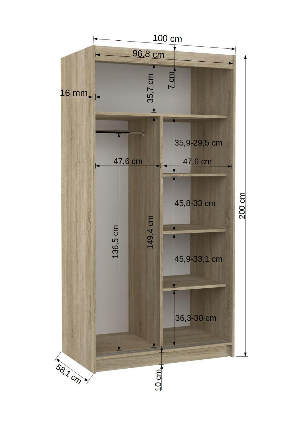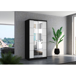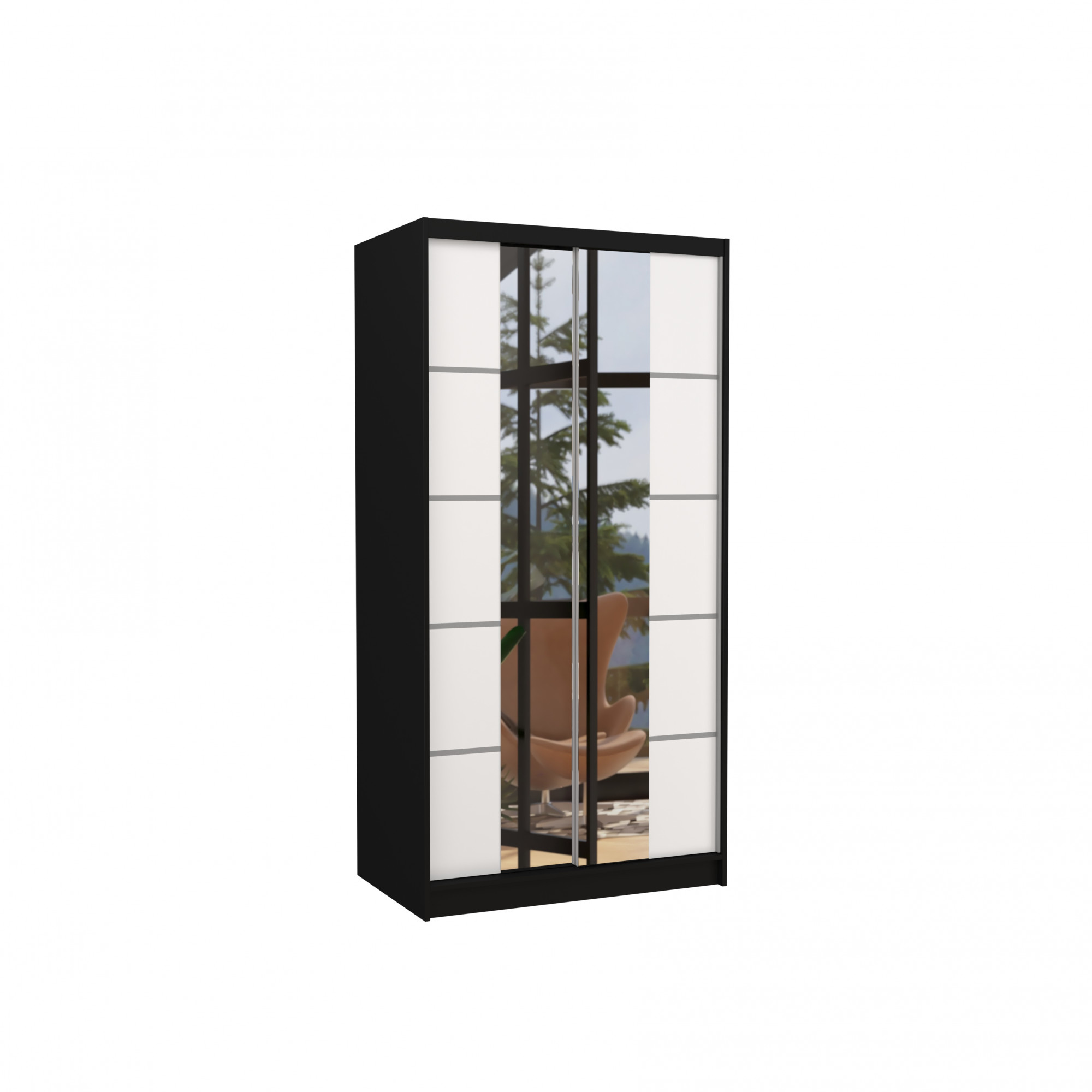 Tolóajtós szekrény tükörrel KSAWER 100 Fekete+Fehér