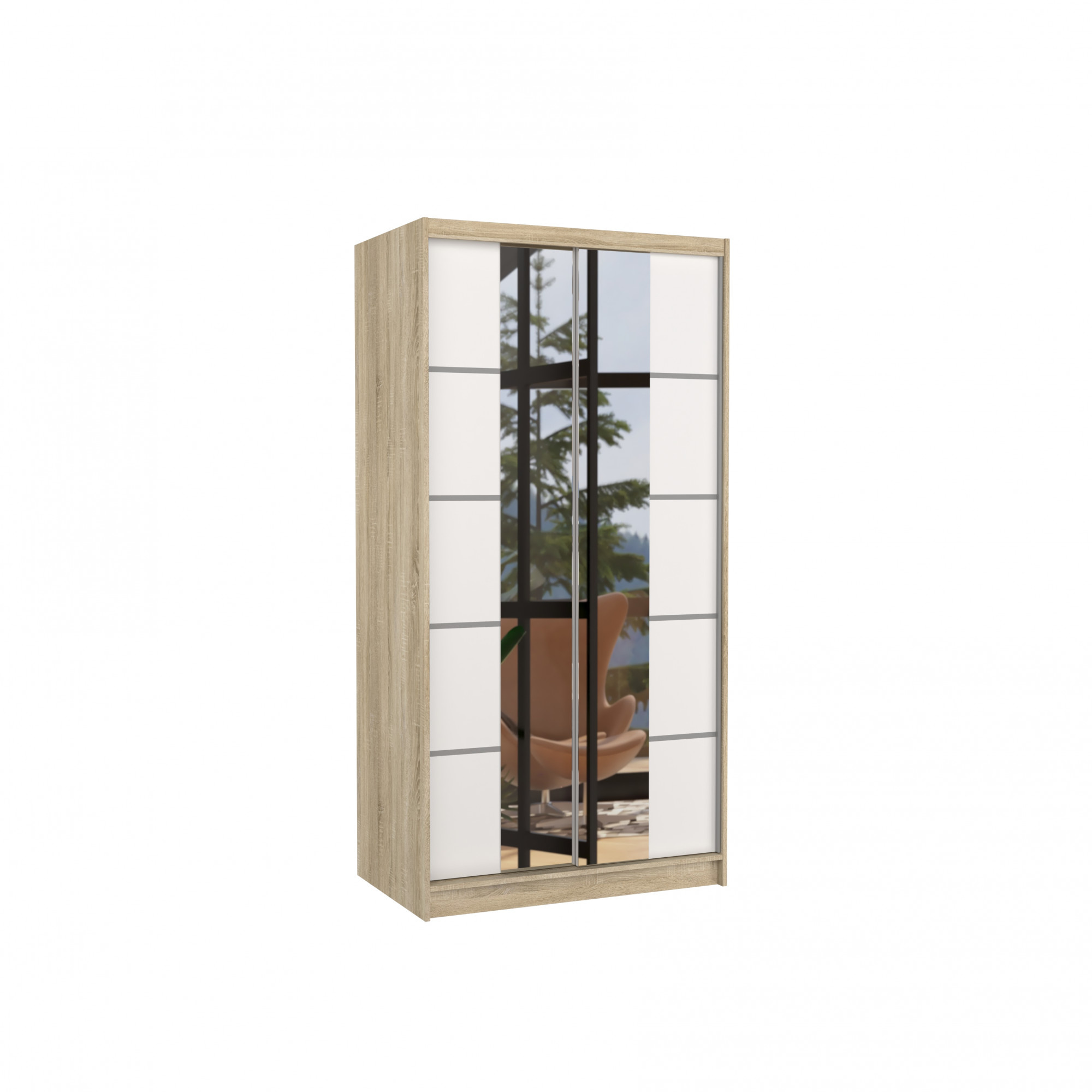 Tolóajtós szekrény tükörrel KSAWER 100 Sonoma+Fehér