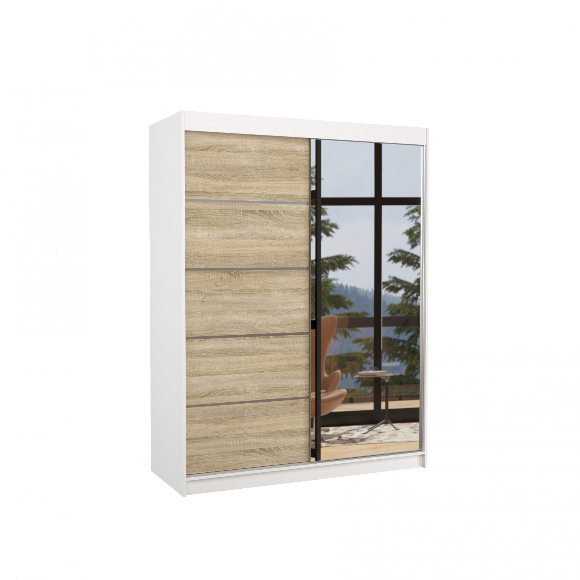 Tolóajtós szekrény tükörrel LIMBO 150 Fehér+Sonoma