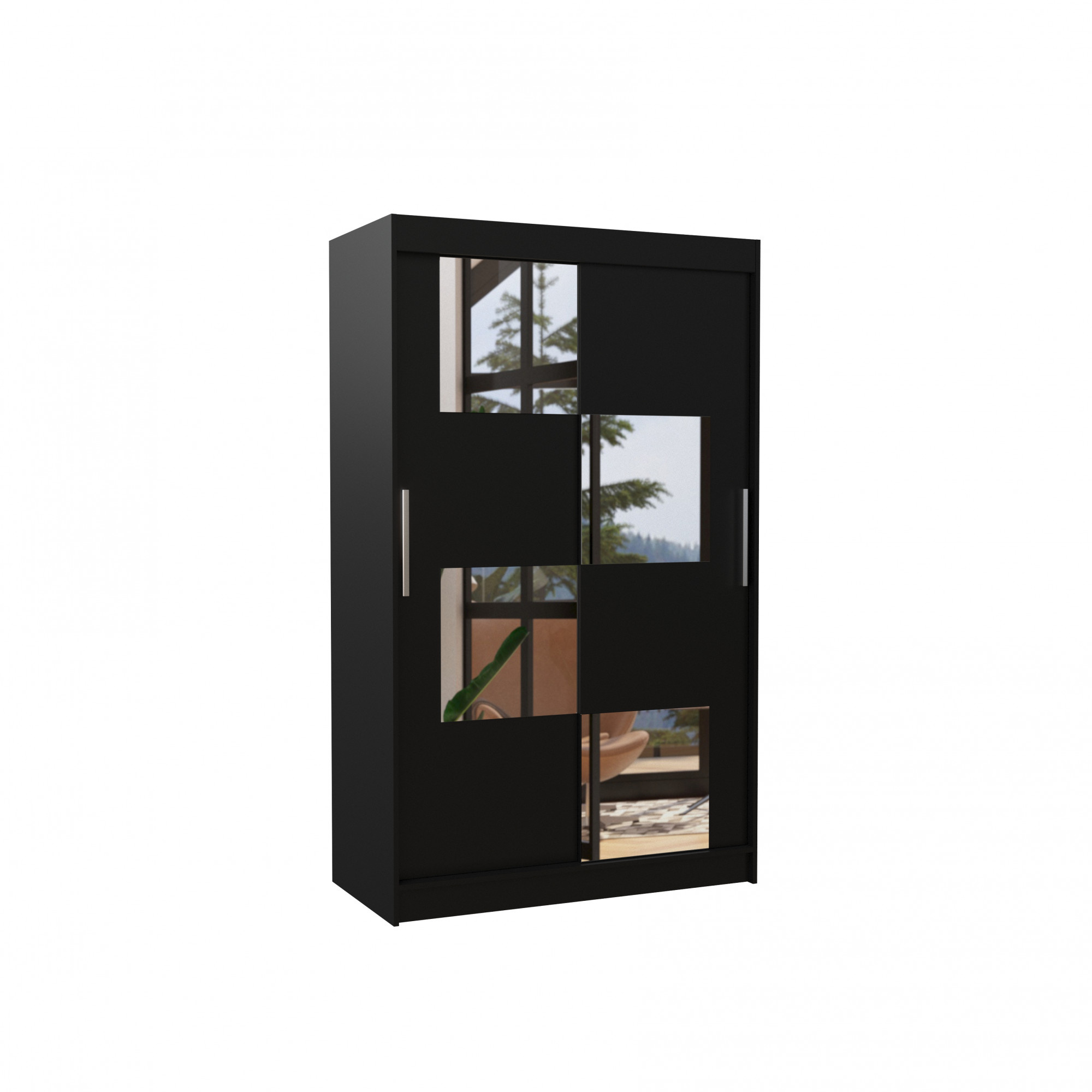 Tolóajtós szekrény tükörrel LUGANO 120 Fekete+Fekete