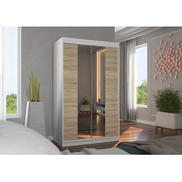 Tolóajtós szekrény tükörrel MARVIN 120 Fehér+Sonoma