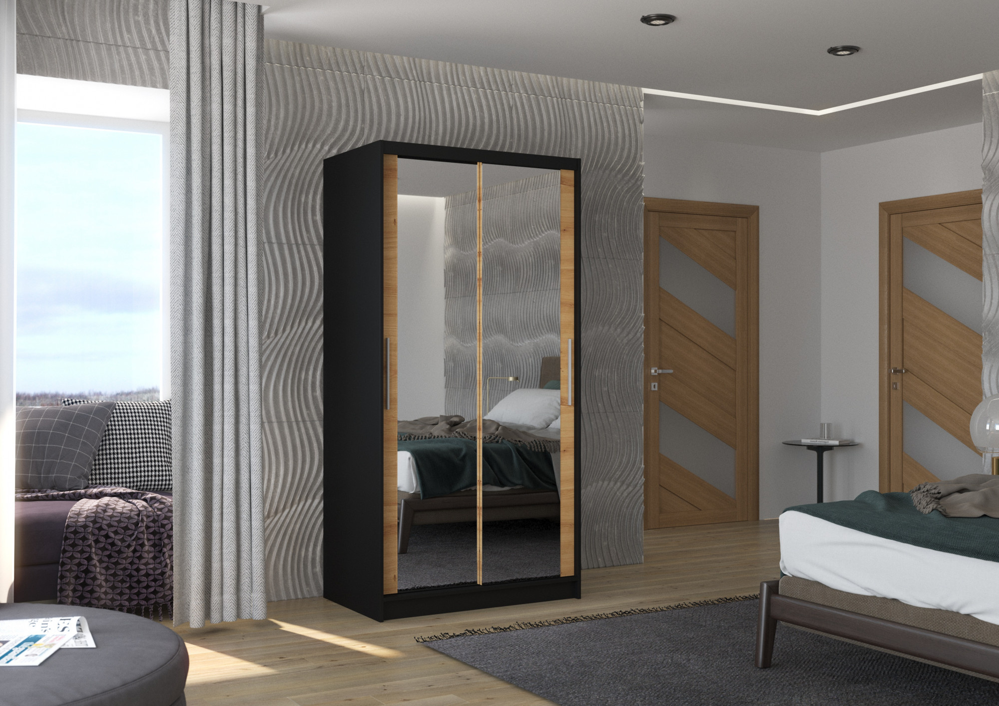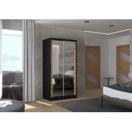 Tolóajtós szekrény tükörrel NEVIO 100 Fekete+Artisan