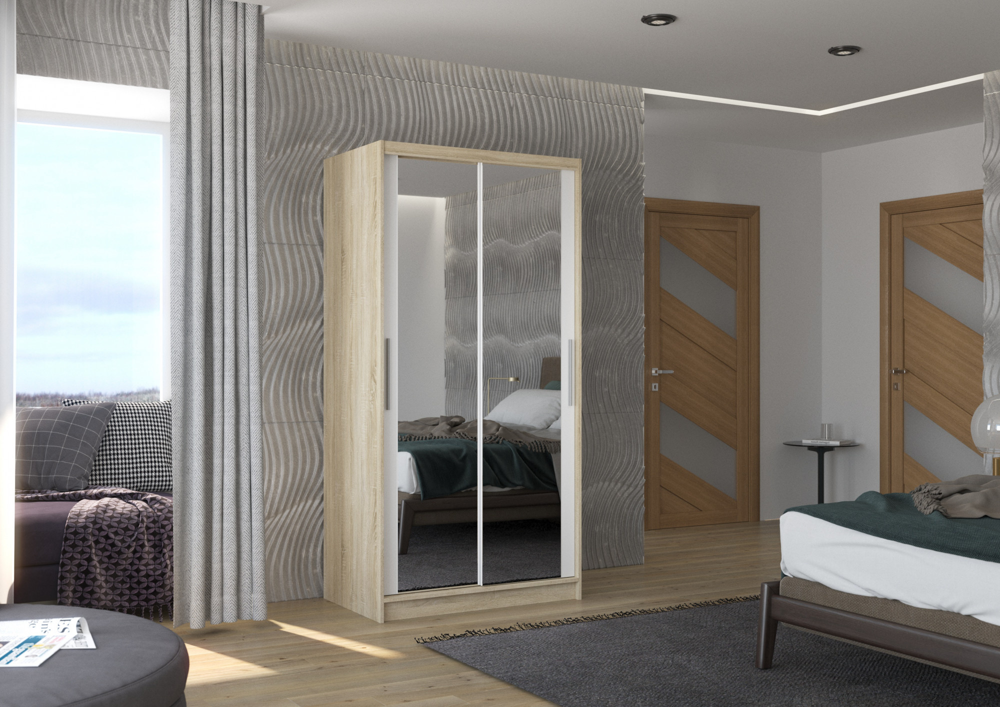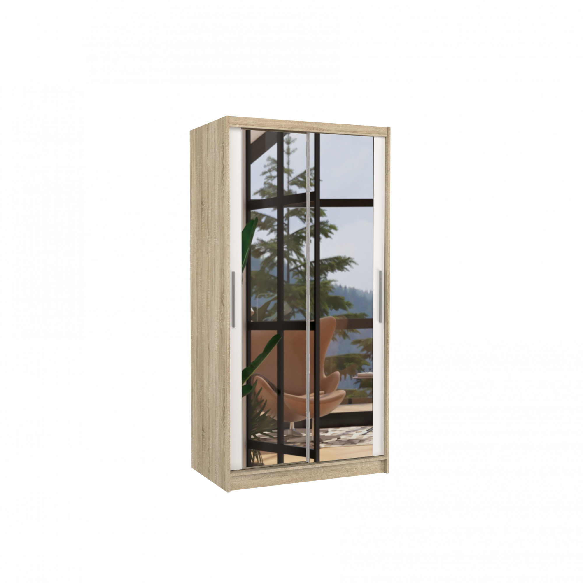 Tolóajtós szekrény tükörrel NEVIO 100 Sonoma+Fehér