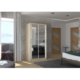 A NEVIO tolóajtós és tükrös ruhásszekrény ideális módja a tér rendezésének. A bútor tágas polcokkal és egy rúddal van felszerelve, amelyre felakaszthatja a ruhákat, öltönyöket, felsőruházatot vagy ingeket. Az elülső oldalra tükröket szereltek, amelyek optikailag növelik a teret. Annak köszönhetően, hogy a szekrény tolóajtós, nem kell további helyet biztosítani az ajtók kinyitásához, ami ideális megoldássá teszi egy kis szoba vagy keskeny előszoba számára.