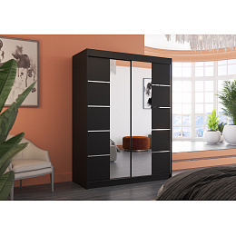 Tolóajtós szekrény tükörrel NORDIC 150 Fekete+Fekete