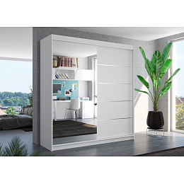 Tolóajtós szekrény tükörrel OLIVER 200 Fehér+Fehér