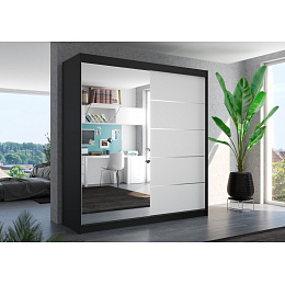 Tolóajtós szekrény tükörrel OLIVER 200 Fekete+Fehér