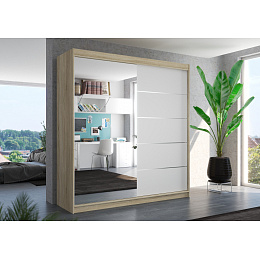 Tolóajtós szekrény tükörrel OLIVER 200 Sonoma+Fehér