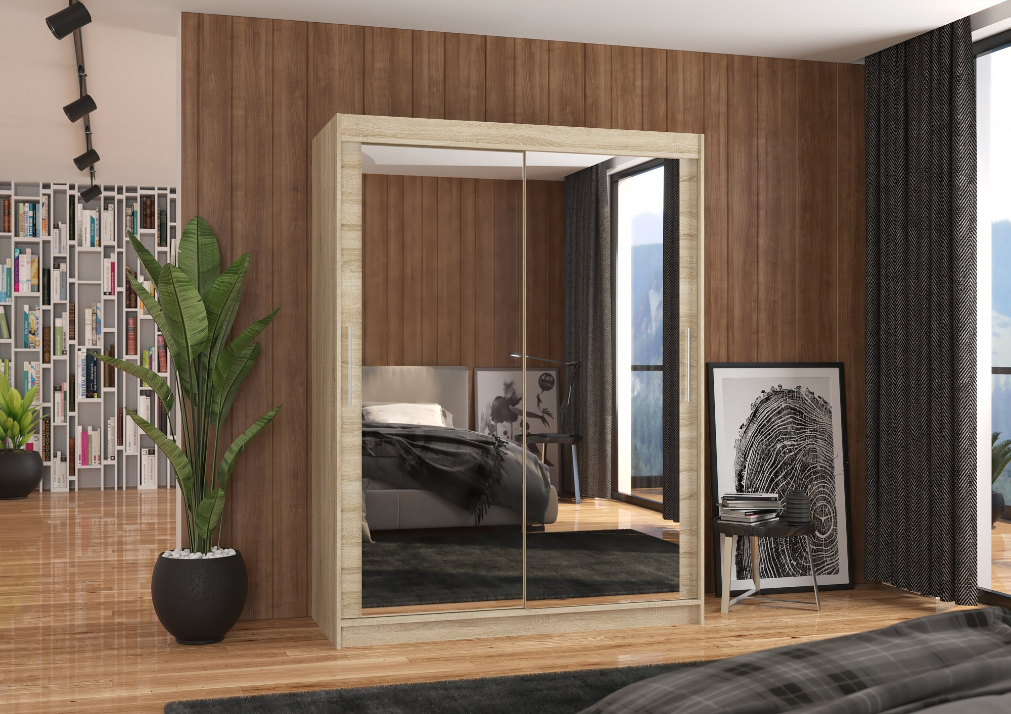 Tolóajtós szekrény tükörrel PERMO 150 Sonoma+Sonoma