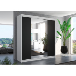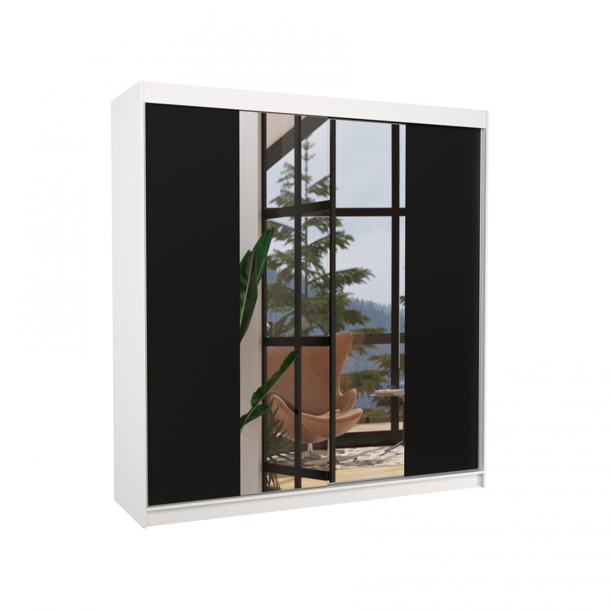 Tolóajtós szekrény tükörrel PERQS 200 Fehér+Fekete