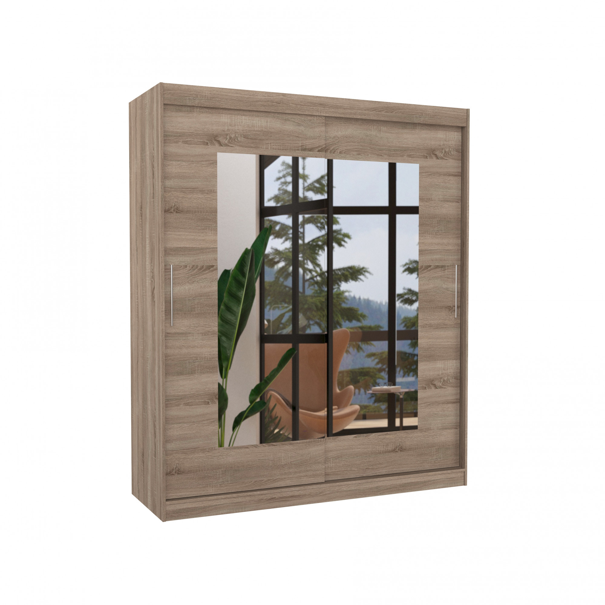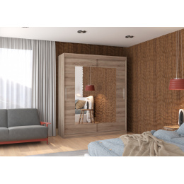 A ROSETTE tolóajtós és tükrös ruhásszekrény ideális módja a tér rendezésének. A bútor tágas polcokkal és egy rúddal van felszerelve, amelyre felakaszthatja a ruhákat, öltönyöket, felsőruházatot vagy ingeket. Az elülső oldalra tükröket szereltek, amelyek optikailag növelik a teret. Annak köszönhetően, hogy a szekrény tolóajtós, nem kell további helyet biztosítani az ajtók kinyitásához, ami ideális megoldássá teszi egy kis szoba vagy keskeny előszoba számára.