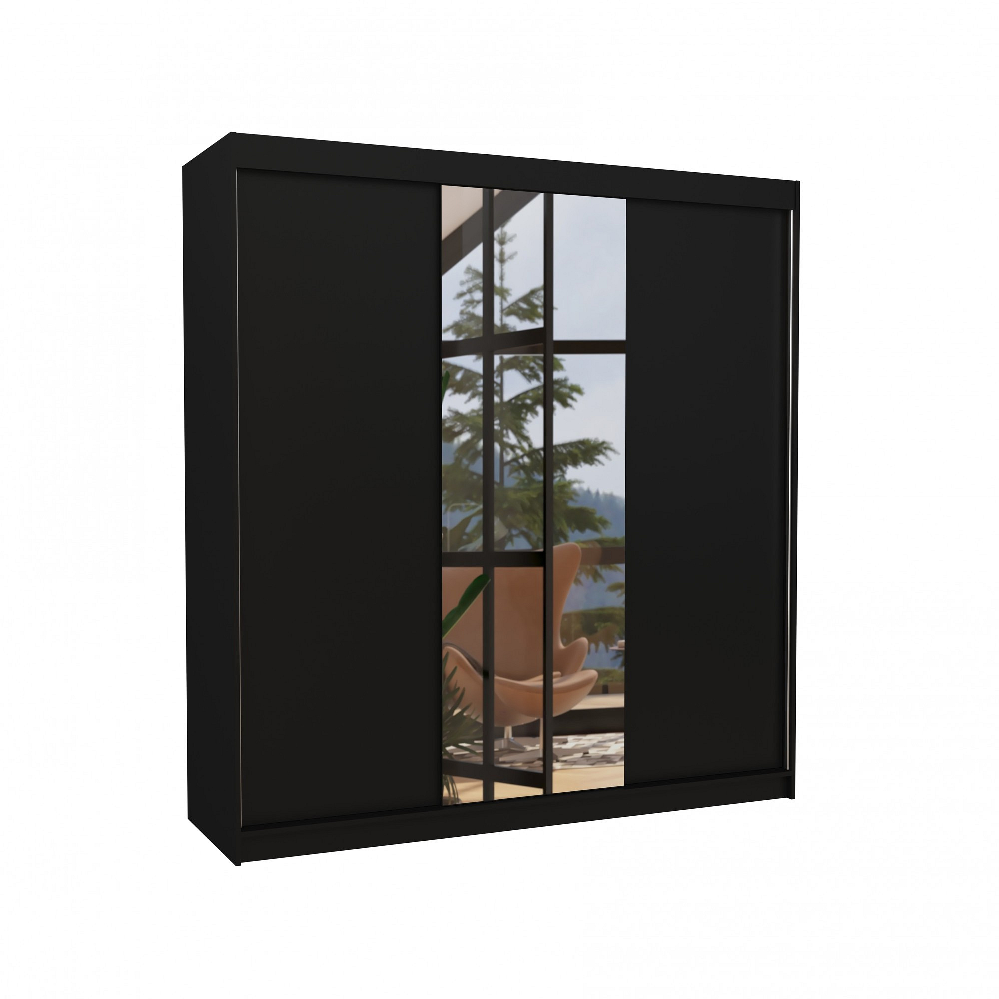 Tolóajtós szekrény tükörrel SANTIAGO 200 Fekete+Fekete