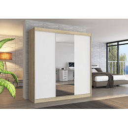 Tolóajtós szekrény tükörrel SANTIAGO 200 Sonoma+Fehér