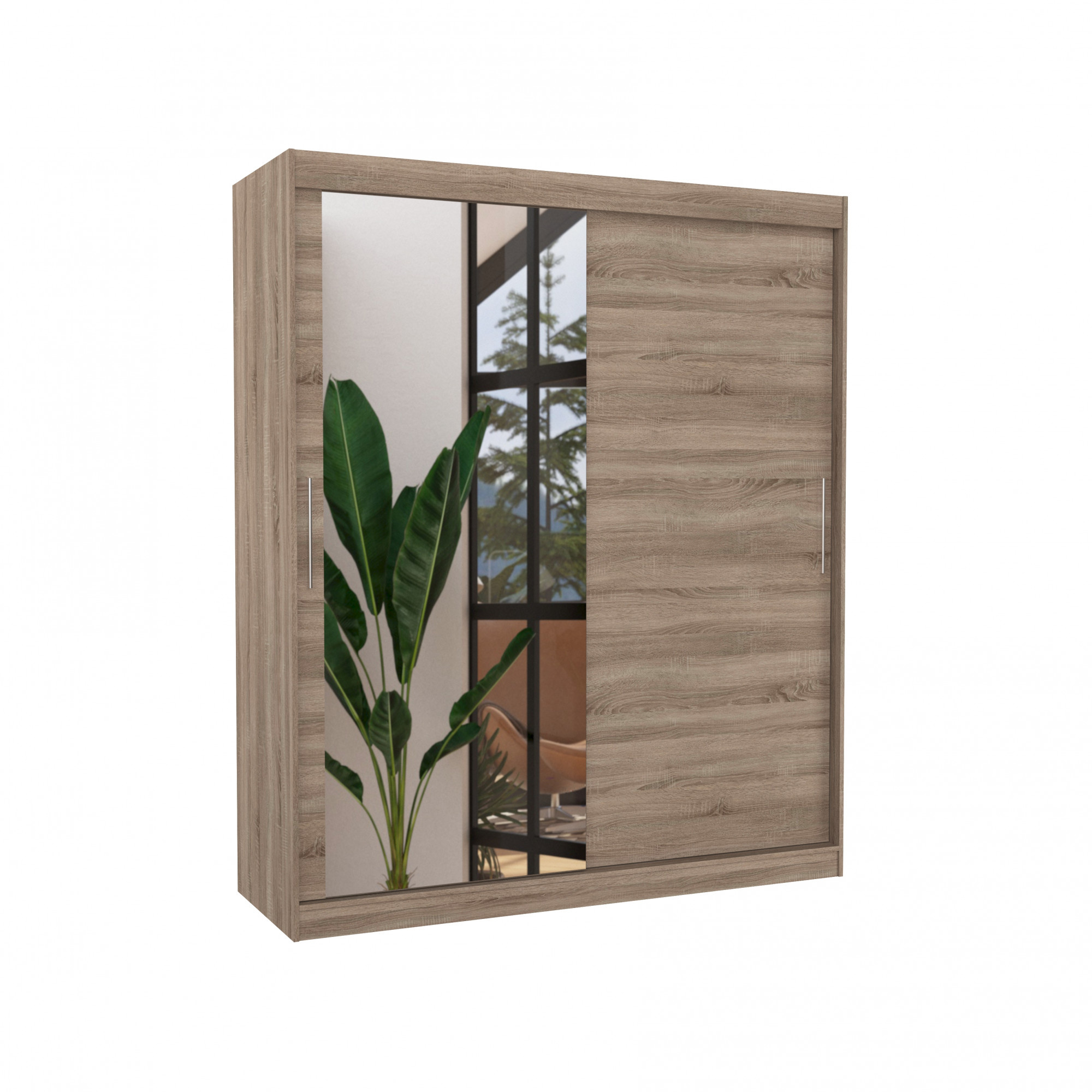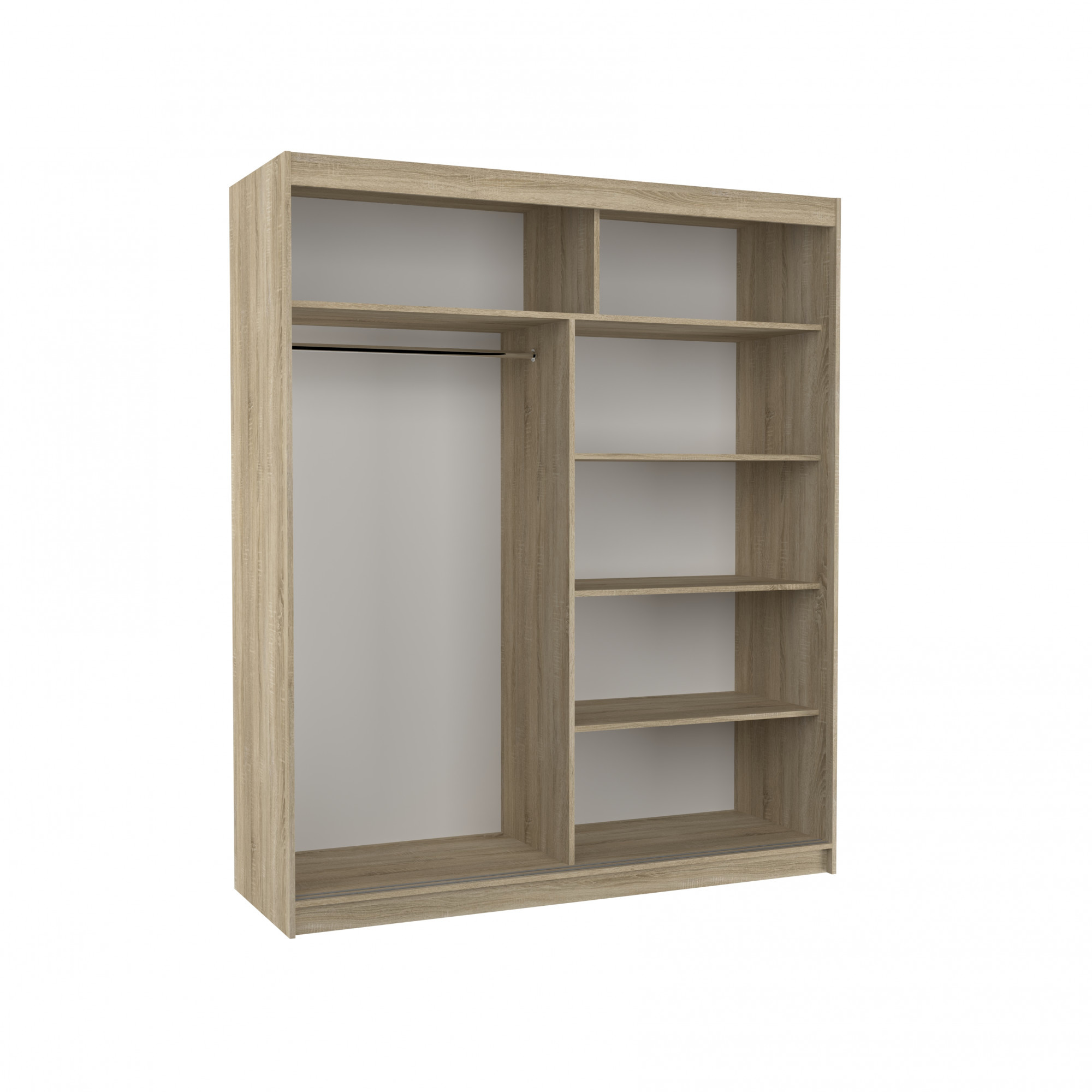 A tolóajtós és tükrös TOM ruhásszekrény ideális módja a tér rendezésének. A bútor tágas polcokkal és egy rúddal van felszerelve, amelyre felakaszthatja a ruhákat, öltönyöket, felsőruházatot vagy ingeket. Az elülső oldalra egy tükör volt rögzítve, amely optikailag megnöveli a teret. Annak köszönhetően, hogy a szekrény tolóajtós, nem kell további helyet biztosítani az ajtók kinyitásához, ami ideális megoldássá teszi egy kis szoba vagy keskeny előszoba számára.