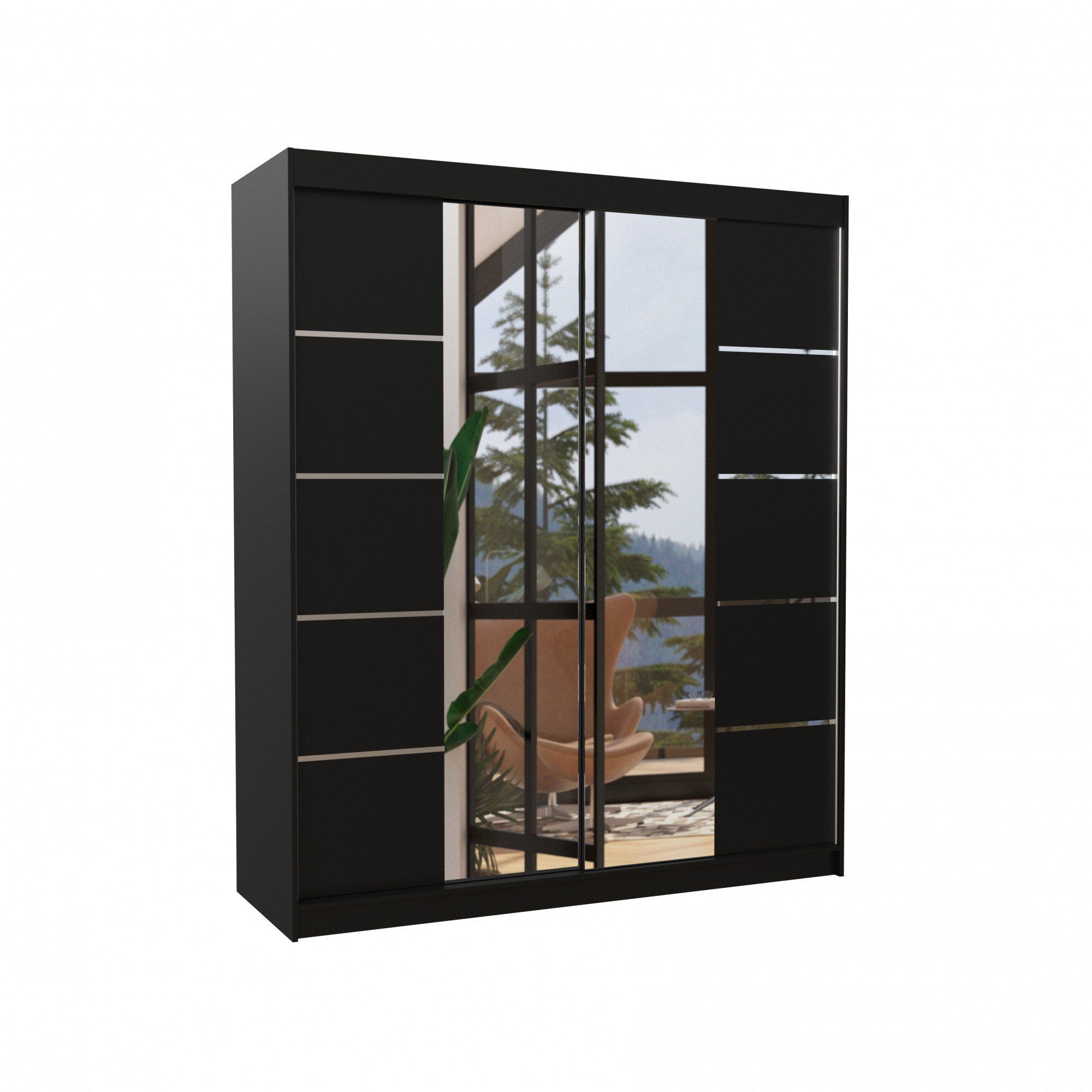 Tolóajtós szekrény tükörrel TRAVES 180 Fekete+Fekete