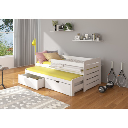 A TOMI leesésgátlós emeletes ágy ideális megoldás két testvér szobájába. Tökéletesen beválik váratlan vendégek látogatása esetén is. A modell két méretben és sok színben kapható, amelyek minden elrendezéshez illenek. Az ágy két praktikus és funkcionális ágyneműtartó fiókkal rendelkezik, valamint tartós és erős kerettel, amely fenyőfából készült. A gyermek biztonságának növelése érdekében a modell további korláttal lett kiegészítve, amely megvédi a leeséstől. A matracok nem tartoznak az ágyhoz.
