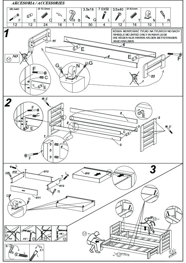 A TOMI leesésgátlós emeletes ágy ideális megoldás két testvér szobájába. Tökéletesen beválik váratlan vendégek látogatása esetén is. A modell két méretben és sok színben kapható, amelyek minden elrendezéshez illenek. Az ágy két praktikus és funkcionális ágyneműtartó fiókkal rendelkezik, valamint tartós és erős kerettel, amely fenyőfából készült. A gyermek biztonságának növelése érdekében a modell további korláttal lett kiegészítve, amely megvédi a leeséstől. A matracok nem tartoznak az ágyhoz.