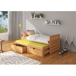 A TOMI kétszemélyes ágy ideális megoldás két testvér szobájában. Tökéletesen beválik váratlan vendégek látogatása esetén is. A modell két méretben és sok színben kapható, amelyek minden elrendezéshez illenek. Az ágy két praktikus és funkcionális ágyneműtartó fiókkal rendelkezik, valamint tartós és erős kerettel, amely fenyőfából készült. A matracok nem tartoznak az ágyhoz.