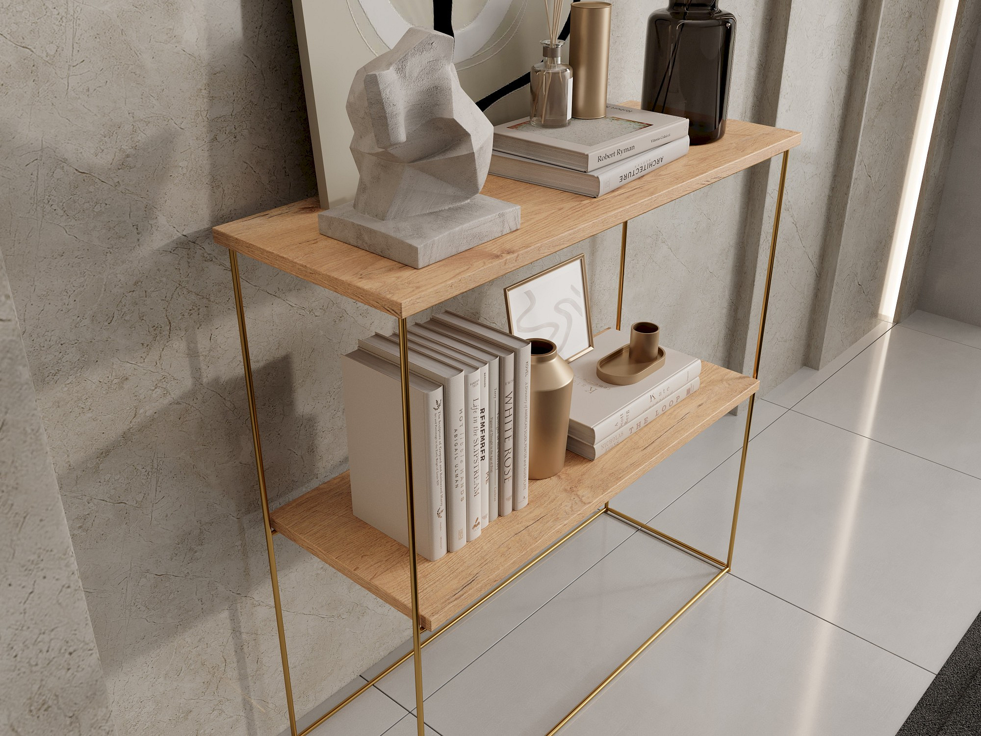 A Toni konzolasztal elegáns és modern bútordarab, amely tökéletesen illeszkedik a különböző belső terekbe, a minimalista stílustól a több eklektikusig. A konzol jellegzetes eleme a huzalból készült láb, amely könnyedséget és modern megjelenést kölcsönöz neki. A sár egyszerű formája ideálisan harmonizál a fém alap finom alakjával, harmonikus egészet alkotva.