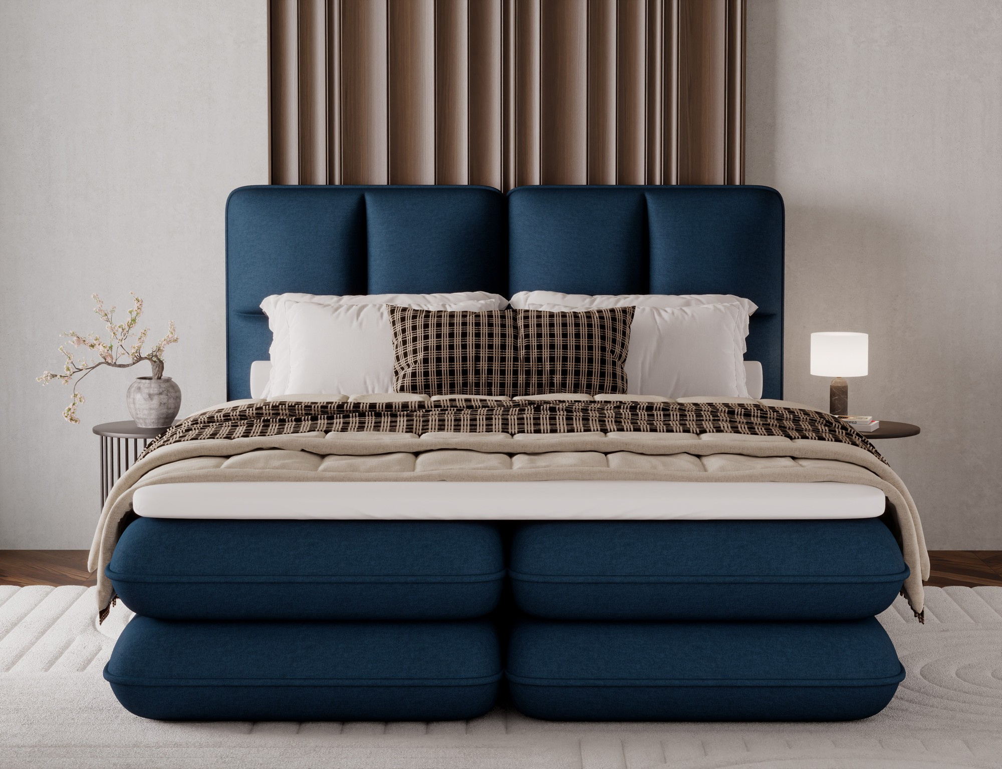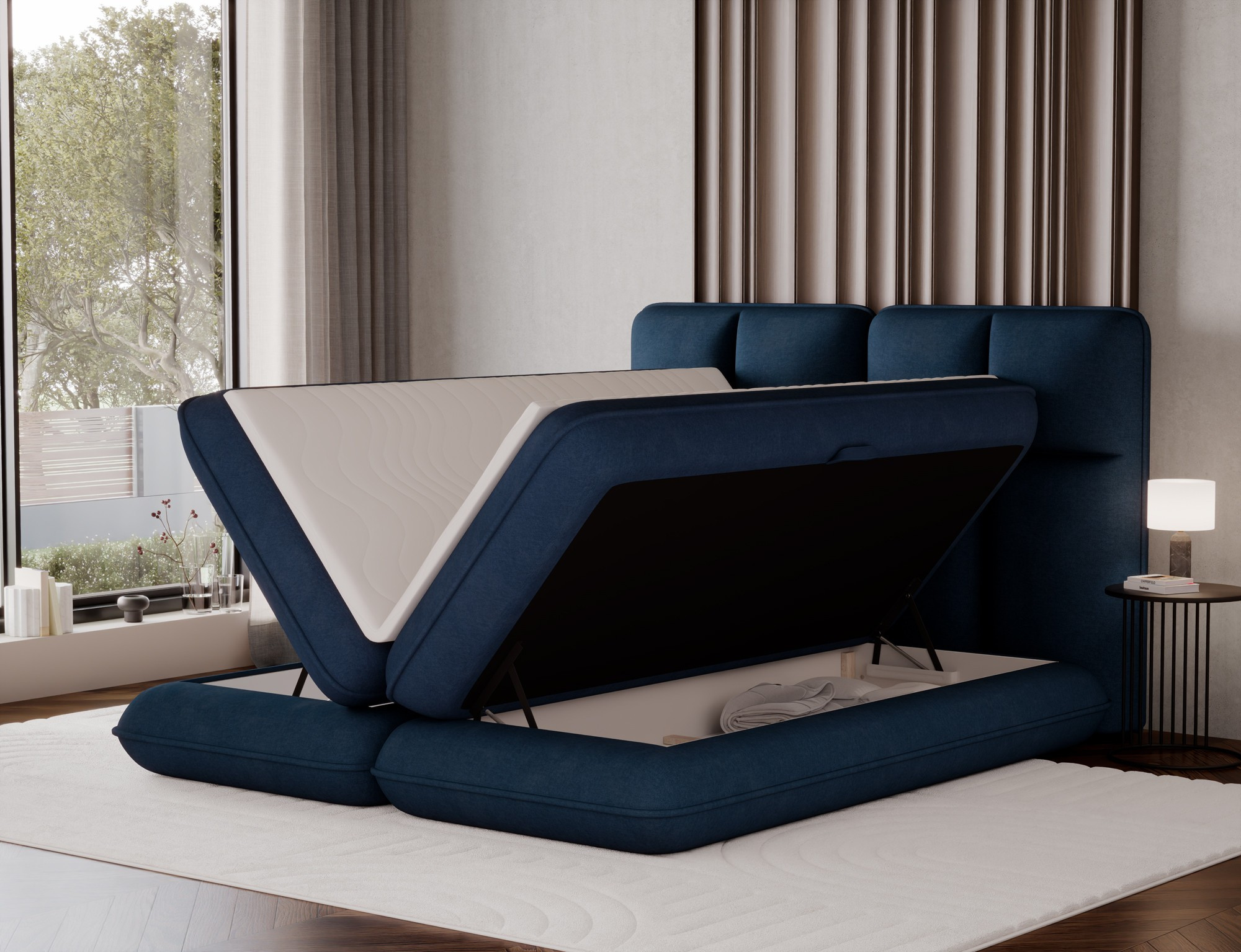The Tonila bed is a modern and functional upholstered bed that combines sleeping comfort with practical solutions for the bedroom, making it an excellent choice for both contemporary and classic interiors; its solid construction with a height of 127 cm and a length of 235 cm ensures stability and comfortable back support, while the seat filling consisting of T2130 foam (storage box), bonell springs, and T2540 foam with a thickness of 2.5 cm provides proper body support and a high level of everyday comfort; the bed is equipped with a practical bedding storage compartment, which helps keep the bedroom organized, and the overall design is complemented by black furniture legs that add a modern and lightweight character; the Tonila model is available in three popular sizes: 140x200 cm, 160x200 cm, and 180x200 cm, allowing easy adjustment to the size of the room and individual needs, making it a comfortable, durable, and stylish bed for the bedroom.