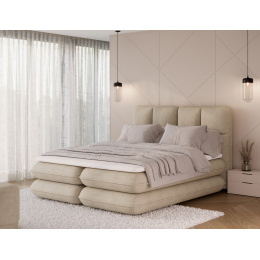The Tonila bed is a modern and functional upholstered bed that combines sleeping comfort with practical solutions for the bedroom, making it an excellent choice for both contemporary and classic interiors; its solid construction with a height of 127 cm and a length of 235 cm ensures stability and comfortable back support, while the seat filling consisting of T2130 foam (storage box), bonell springs, and T2540 foam with a thickness of 2.5 cm provides proper body support and a high level of everyday comfort; the bed is equipped with a practical bedding storage compartment, which helps keep the bedroom organized, and the overall design is complemented by black furniture legs that add a modern and lightweight character; the Tonila model is available in three popular sizes: 140x200 cm, 160x200 cm, and 180x200 cm, allowing easy adjustment to the size of the room and individual needs, making it a comfortable, durable, and stylish bed for the bedroom.