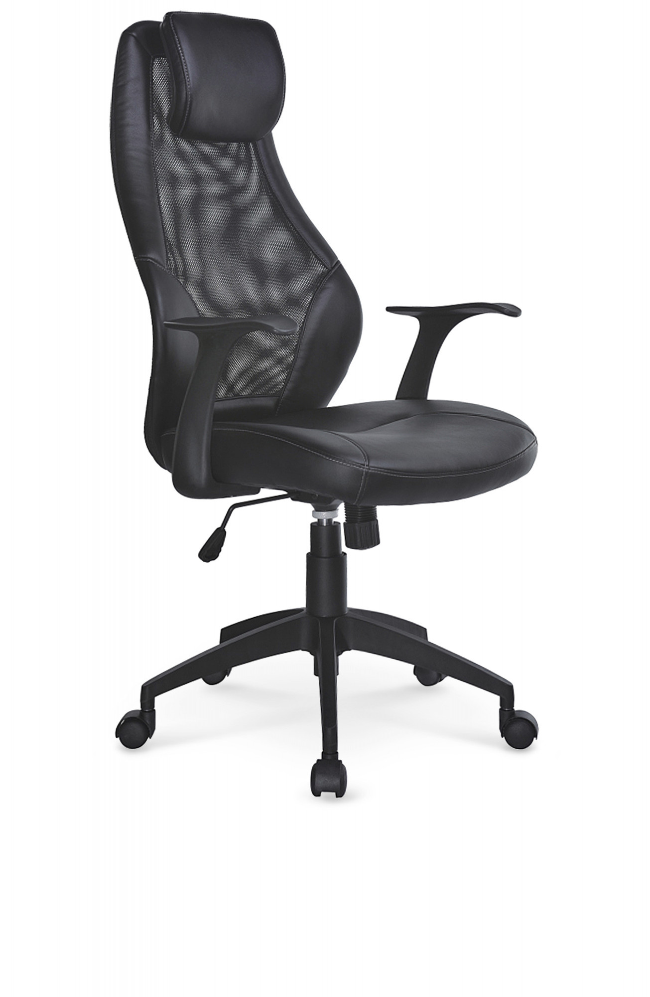 TILT mechanizmus, méretek: 64/63/124÷134 cm, anyag: ökobőr / háló, szín: fekete