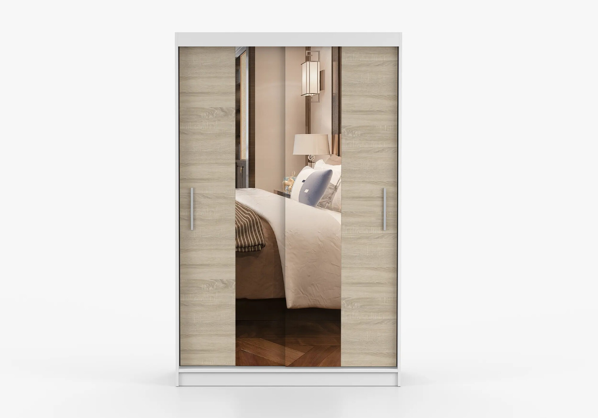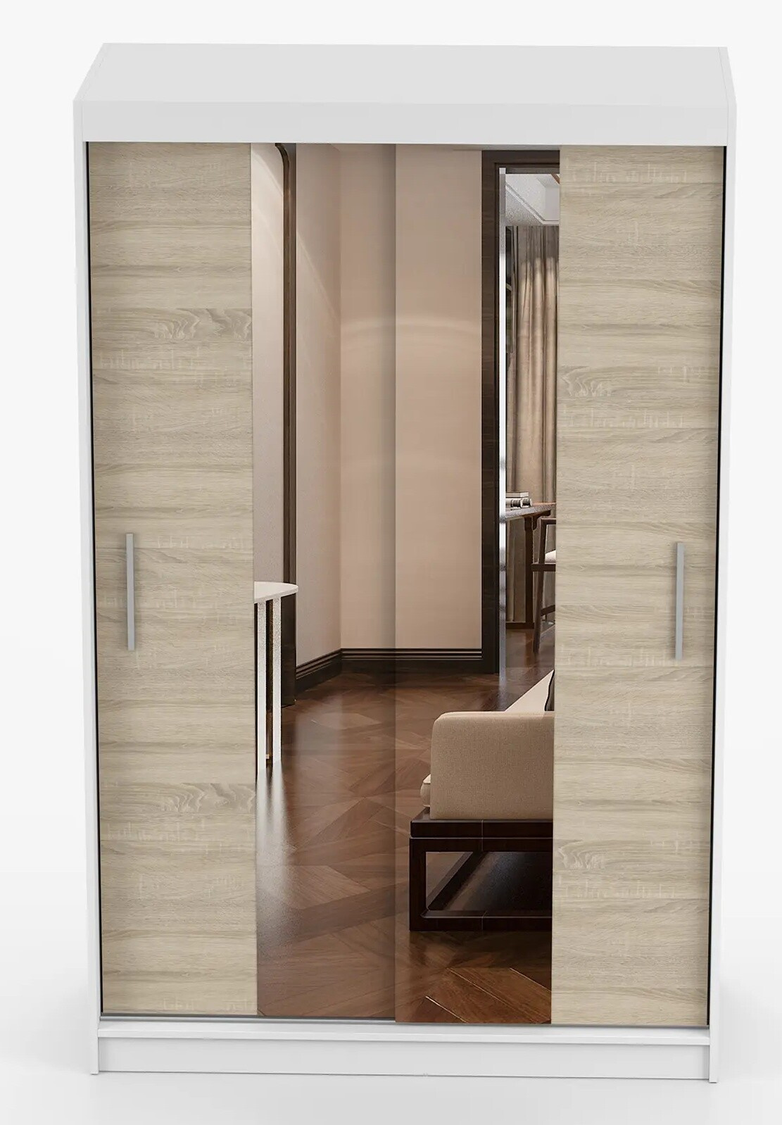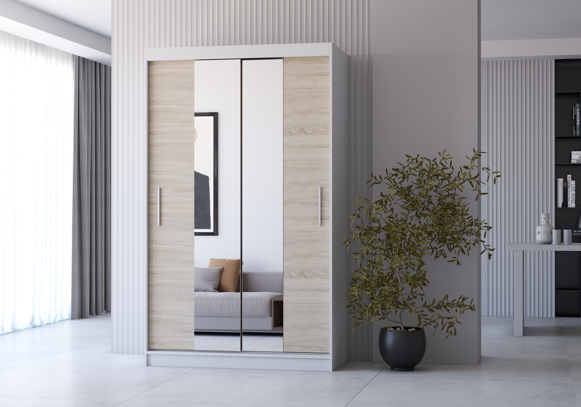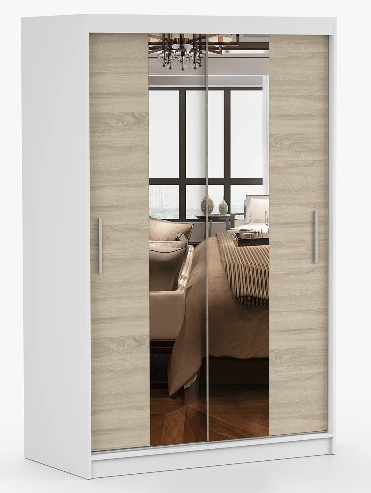 Tükrös ruhásszekrény NOEMI 01, Fehér/Sonoma Tölgy