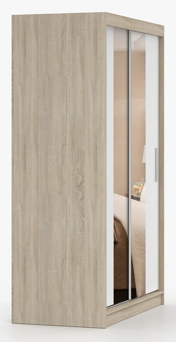 Tükrös ruhásszekrény NOEMI 01, Sonoma Tölgy/Fehér