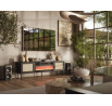 rTV szekrény (kandalló telepítési lehetőség; CAMA- KOMINEK.... külön megvásárolható) Méretek: m/sz/mé-55,5cm/180cm/39,5cm, Anyag: Korpusz: MDF 16mm Előlapok: MDF + PP fólia LINOL CALARBIA; keret - MDF 16mm Lábak: fém, fekete, magasság 20 cm Fogantyúk: az előlapok túlnyúlnak az asztallapon