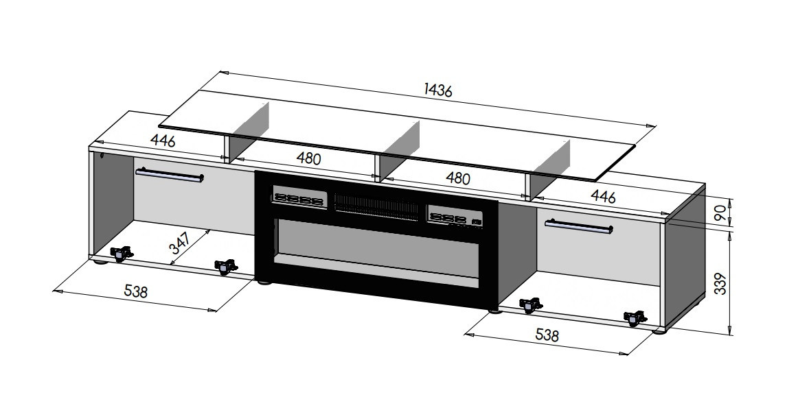 RTV SZEKRÉNY (kandalló telepítési lehetőség, külön kell megrendelni, CAMA-KOMINEK...) Méretek: m/s/mé - 48/190/37 cm Váz: 16 mm laminált forgácslap, megfelel a CARB követelményeinek Előlap: 16 mm fényes MDF lap, megfelel a CARB követelményeinek Lábak: műanyag Fogantyúk: műanyag Üveg: 8 mm edzett üveg, mart-trapéz Méretek: 202x43x12 Súly: 42 kg
