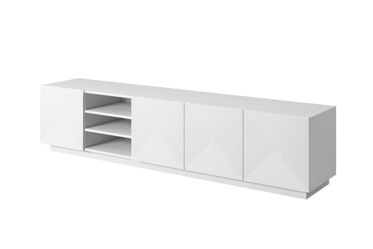 RTV skříňka 200 cm Asha s drážkováním a výklenkem - bílý mat, Šířka: 200, Výška: 46, Hloubka: 40