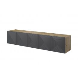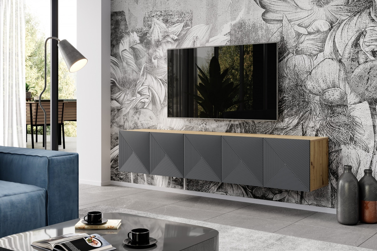 Závěsná TV skříňka 200 cm Asha pětidveřová s drážkovaným čelem - artisan / rivier stone mat, Šířka: 200, Výška: 40, Hloubka: 40