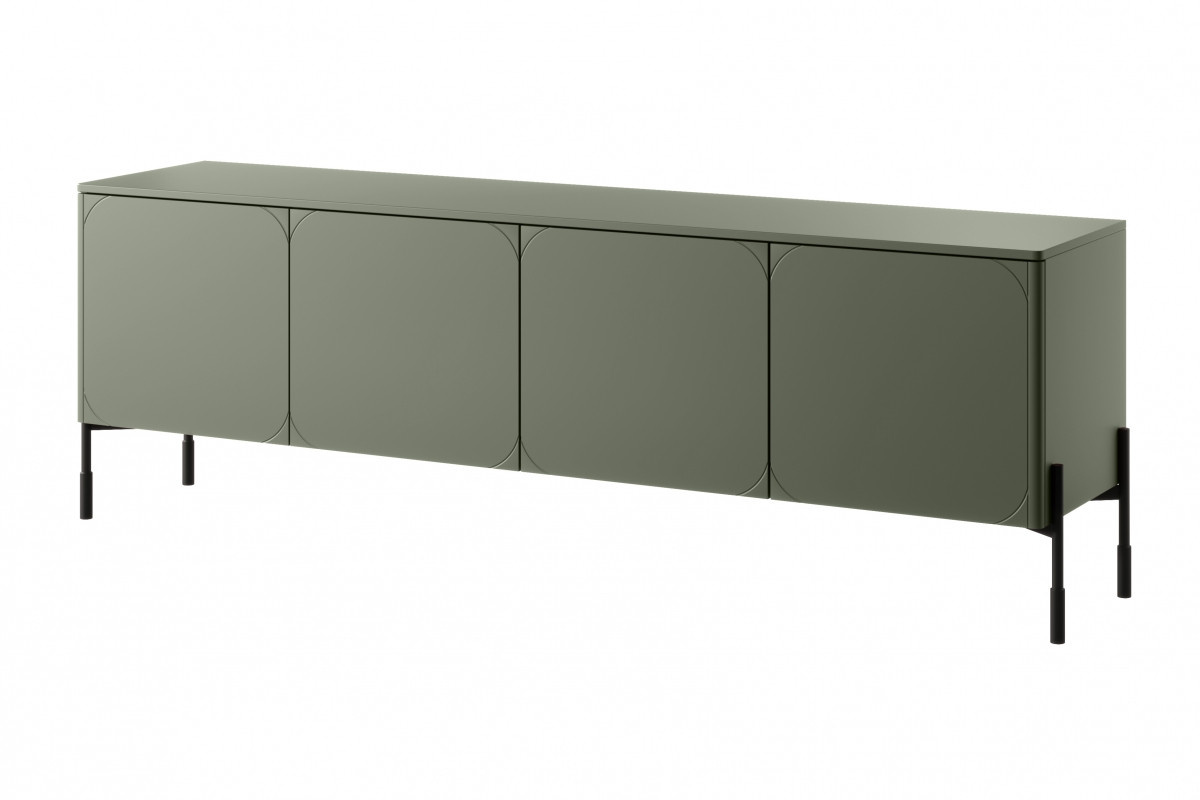 Čtyřdveřová TV skříňka se skrytou zásuvkou Sonatia 200 cm - olivová, Šířka: 204, Výška: 65, Hloubka: 45, Výška nožiček: 20, Montáž: