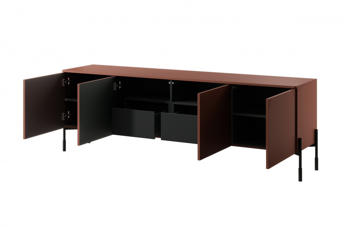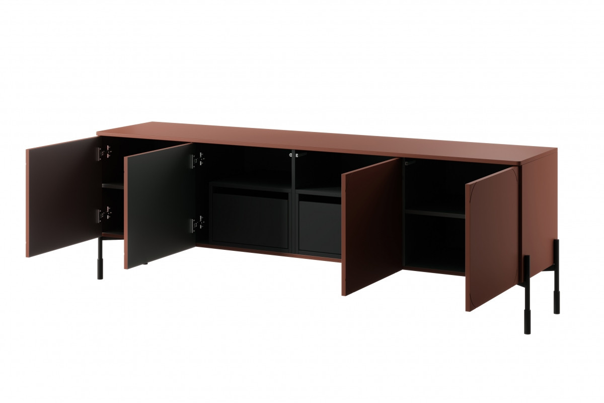 4dveřová RTV skříňka se 2 skrytými zásuvkami Sonatia 200 cm - vínová, šířka: 204, výška: 65, hloubka: 45, výška nožiček: 20, montáž: