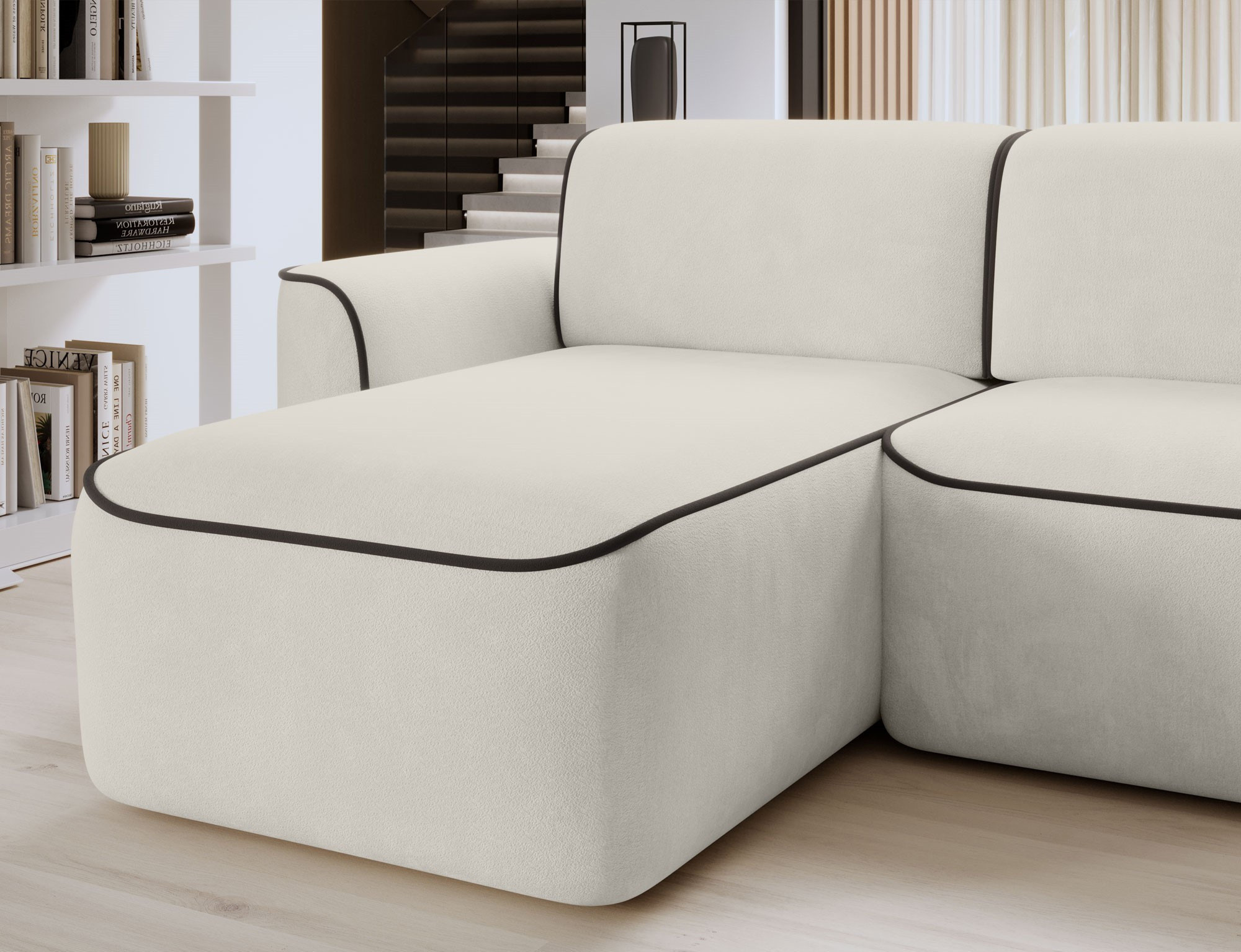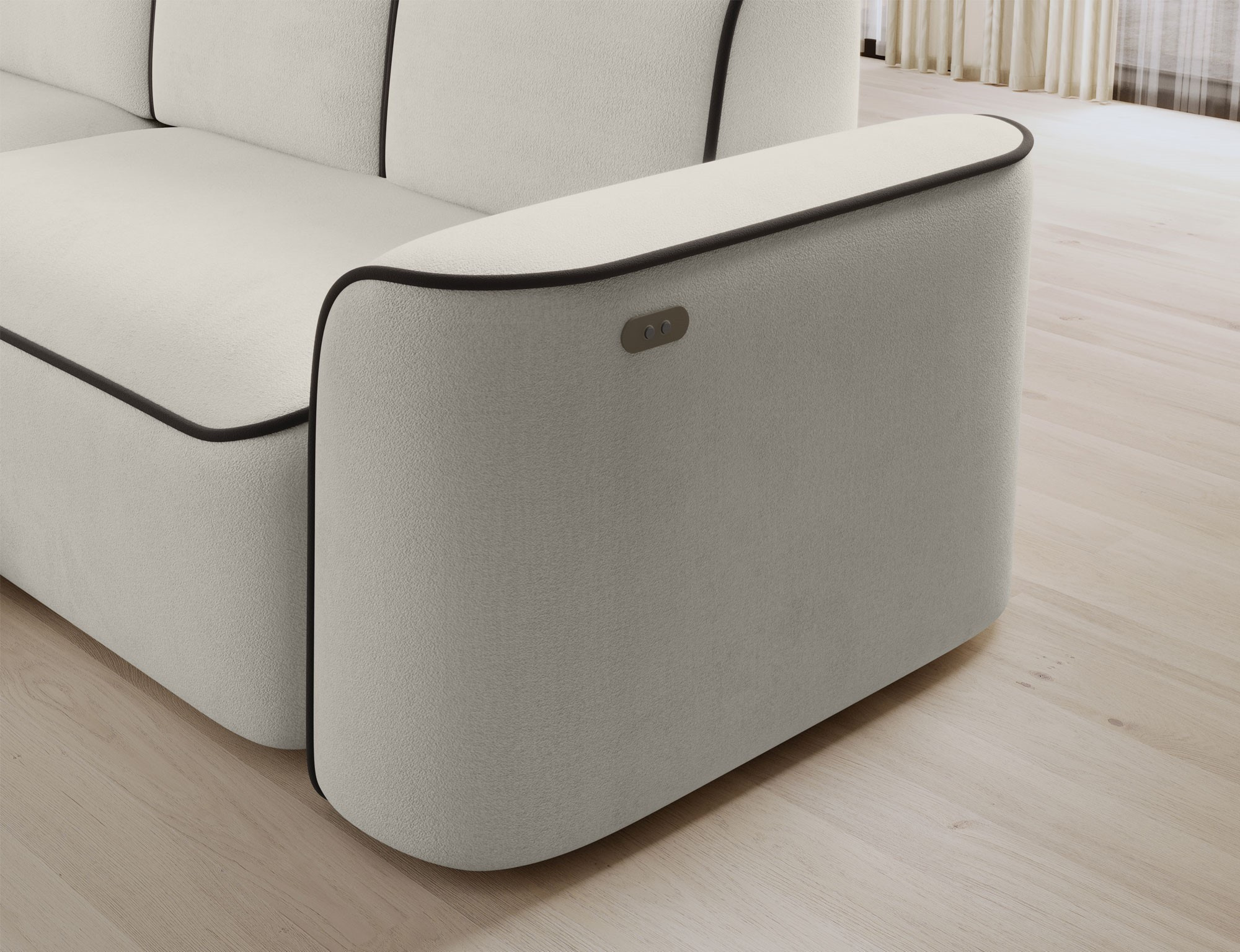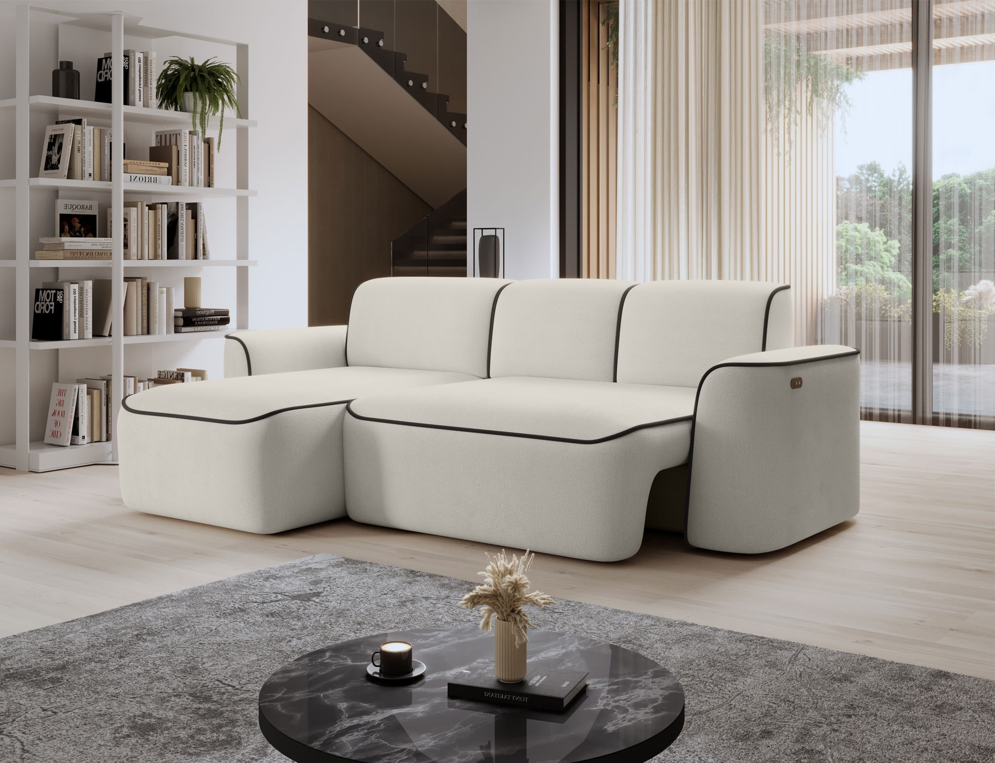 The Ume corner sofa is an elegant L-shaped corner sofa that impresses with its modern design and high-quality craftsmanship. The seat of the corner sofa is made of high-density HR foam HR Foam + T3030, which provides a comfortable and durable seating area. The backrest of the corner sofa is made of foam with density T2540 + T2315, which guarantees proper support for the back and comfort during relaxation. The Ume corner sofa is characterized by impressive dimensions of 287x190x88 cm. Thanks to the high-quality materials and solid construction, this corner sofa will provide many years of comfortable use and satisfaction. Additionally, the Ume corner sofa is equipped with an electronically retractable seat, making the use of this furniture even more comfortable and functional. With the electric mechanism, the seat position can be easily adjusted to individual preferences, allowing for customized seating positions tailored to the user's needs. This innovative addition makes the Ume corner sofa an excellent choice for people who value comfort and modern solutions in their interior.