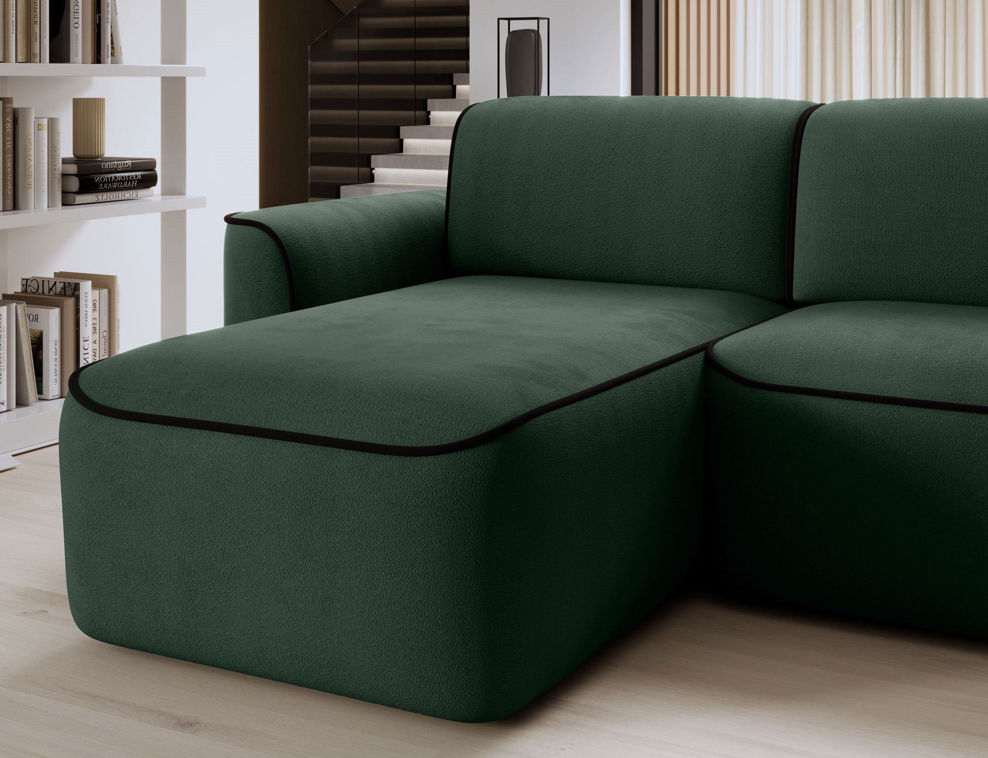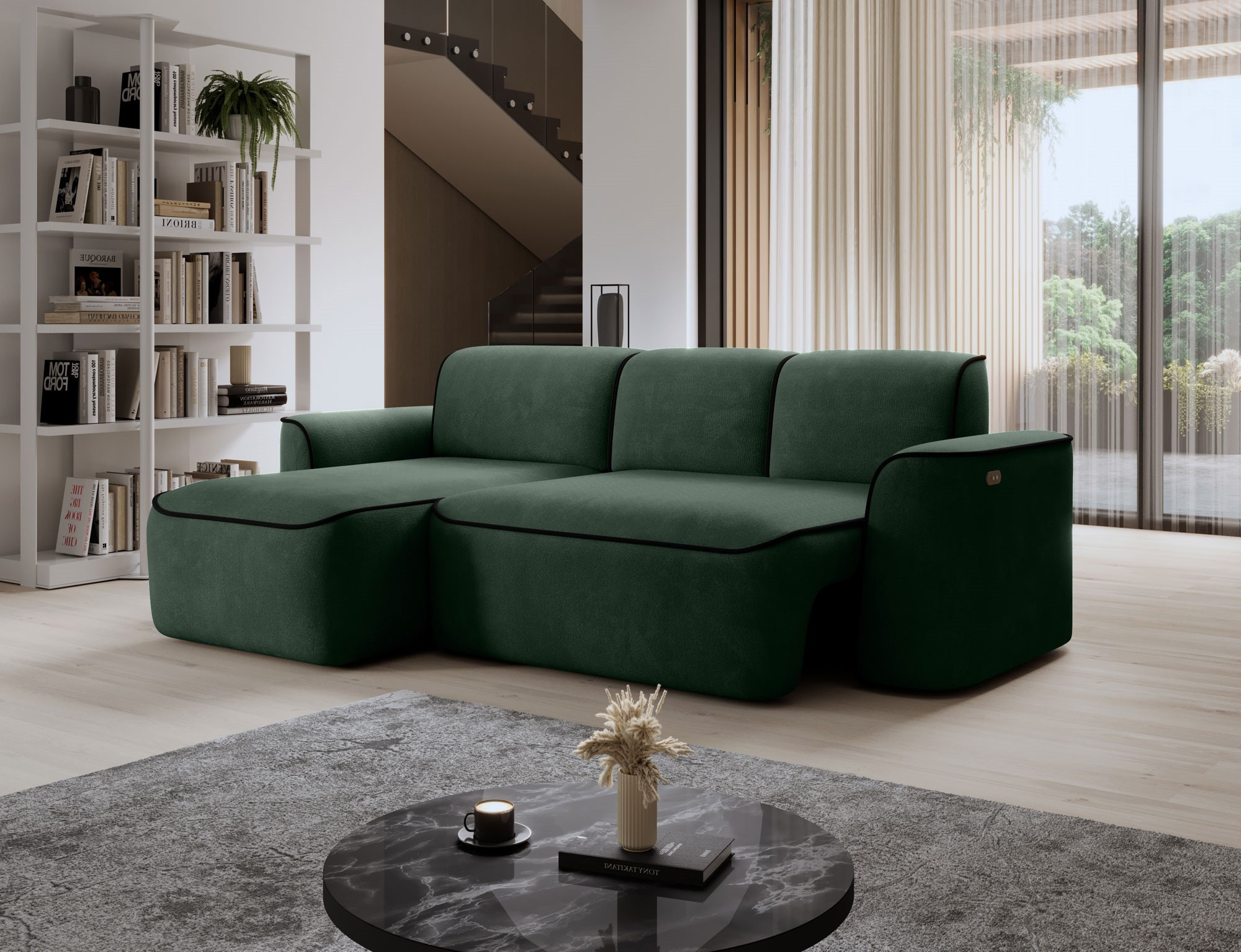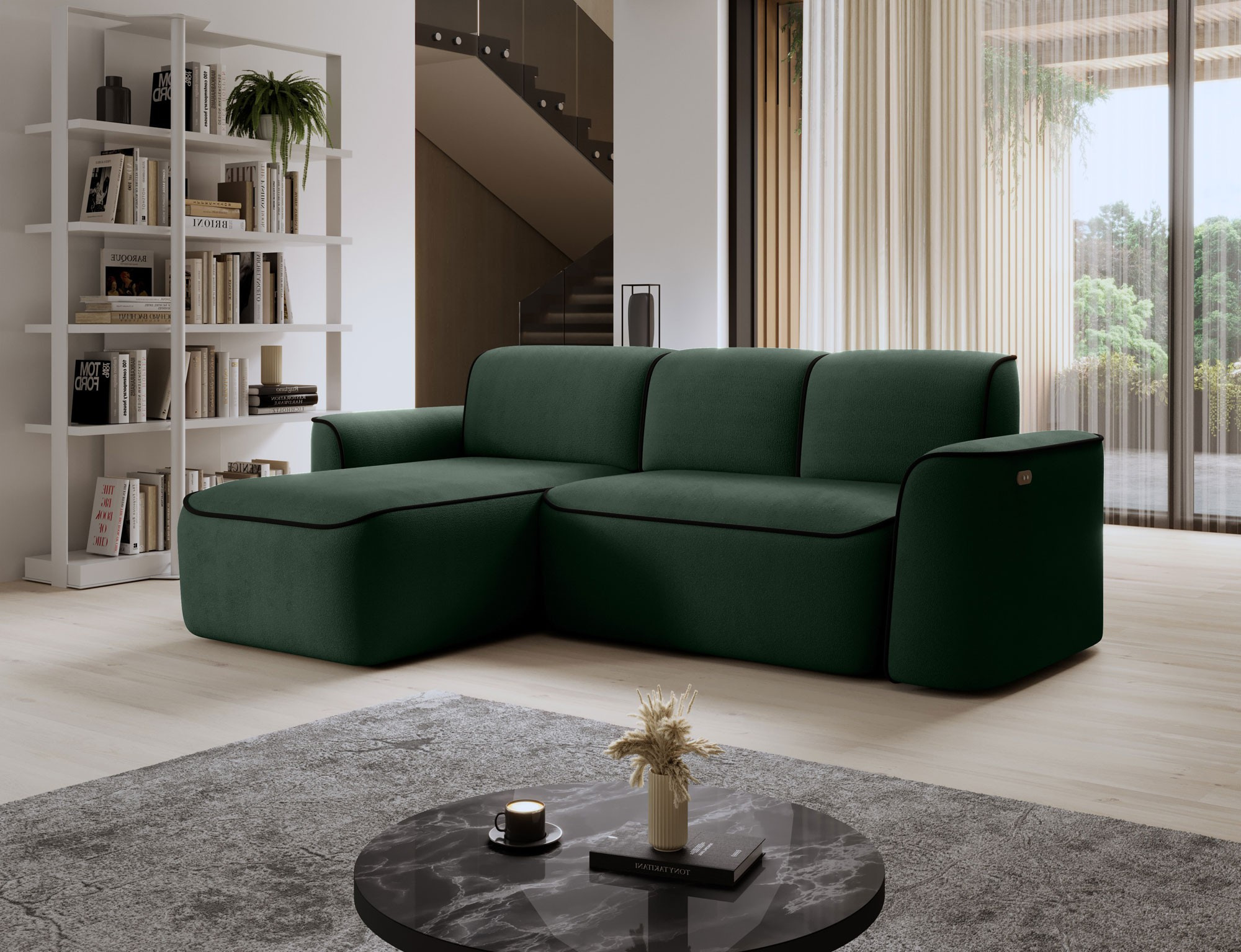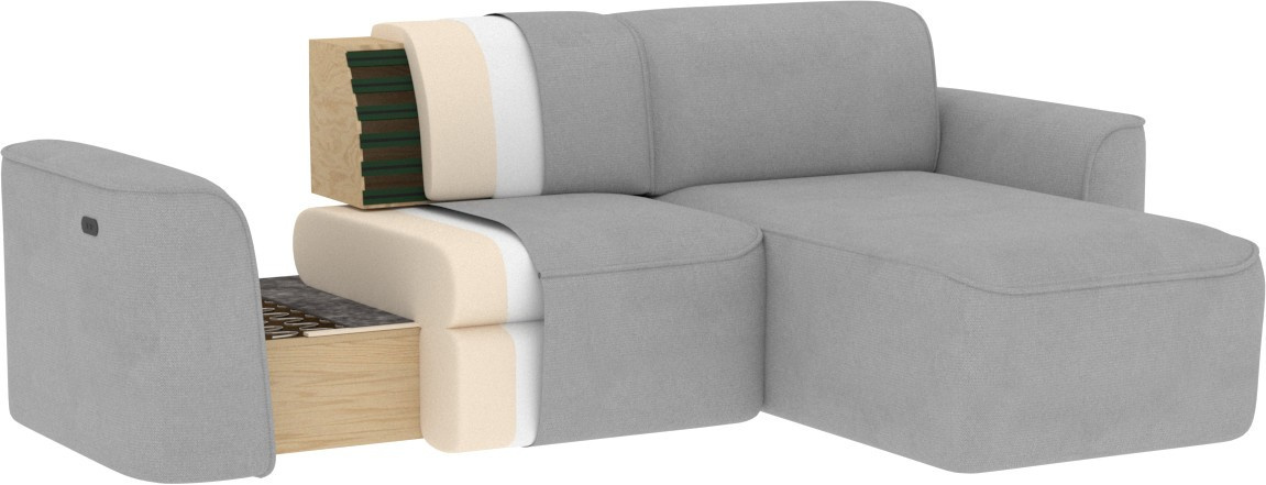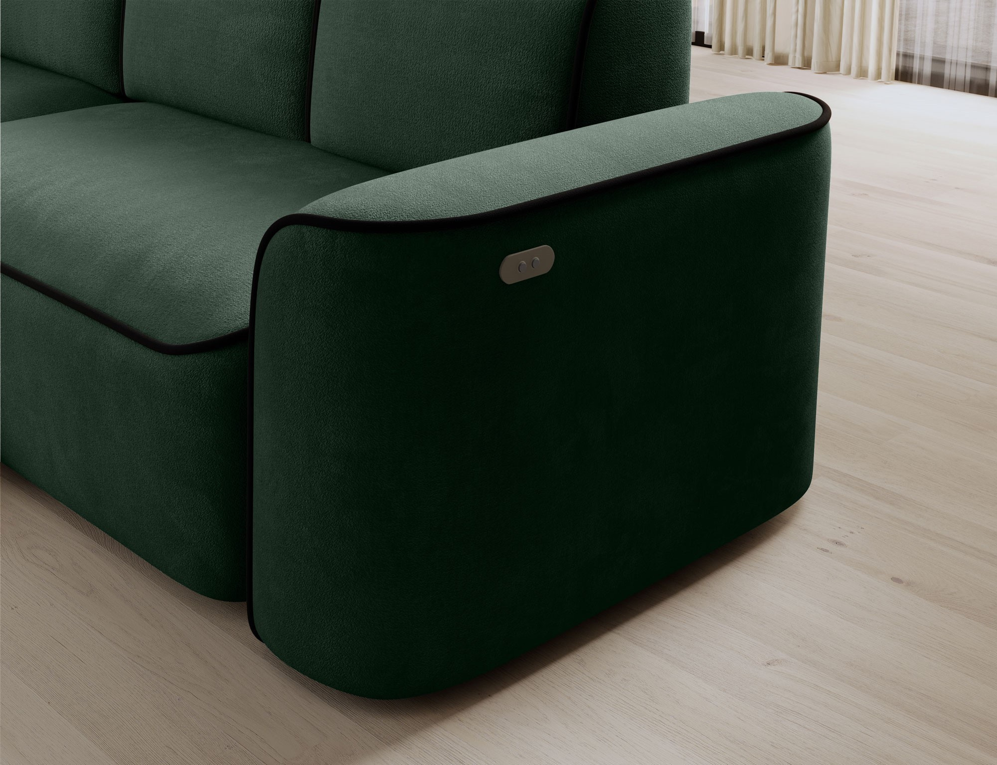 The Ume corner sofa is an elegant L-shaped corner sofa that impresses with its modern design and high-quality craftsmanship. The seat of the corner sofa is made of high-density HR foam HR Foam + T3030, which provides a comfortable and durable seating area. The backrest of the corner sofa is made of foam with density T2540 + T2315, which guarantees proper support for the back and comfort during relaxation. The Ume corner sofa is characterized by impressive dimensions of 287x190x88 cm. Thanks to the high-quality materials and solid construction, this corner sofa will provide many years of comfortable use and satisfaction. Additionally, the Ume corner sofa is equipped with an electronically retractable seat, making the use of this furniture even more comfortable and functional. With the electric mechanism, the seat position can be easily adjusted to individual preferences, allowing for customized seating positions tailored to the user's needs. This innovative addition makes the Ume corner sofa an excellent choice for people who value comfort and modern solutions in their interior.
