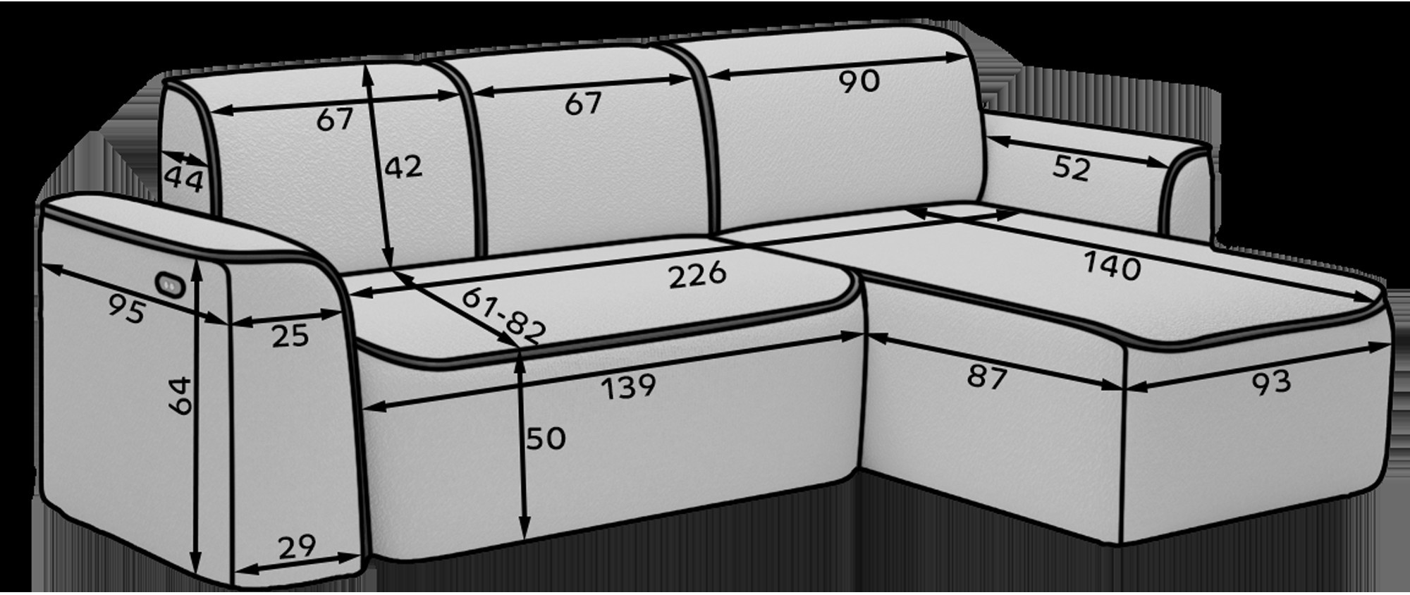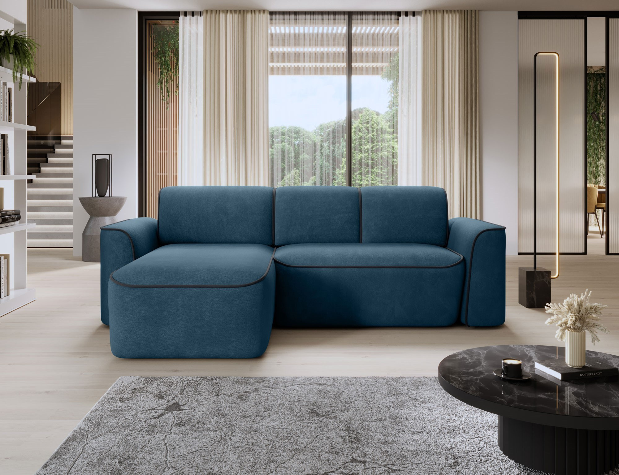The Ume corner sofa is an elegant L-shaped corner sofa that impresses with its modern design and high-quality craftsmanship. The seat of the corner sofa is made of high-density HR foam HR Foam + T3030, which provides a comfortable and durable seating area. The backrest of the corner sofa is made of foam with density T2540 + T2315, which guarantees proper support for the back and comfort during relaxation. The Ume corner sofa is characterized by impressive dimensions of 287x190x88 cm. Thanks to the high-quality materials and solid construction, this corner sofa will provide many years of comfortable use and satisfaction. Additionally, the Ume corner sofa is equipped with an electronically retractable seat, making the use of this furniture even more comfortable and functional. With the electric mechanism, the seat position can be easily adjusted to individual preferences, allowing for customized seating positions tailored to the user's needs. This innovative addition makes the Ume corner sofa an excellent choice for people who value comfort and modern solutions in their interior.