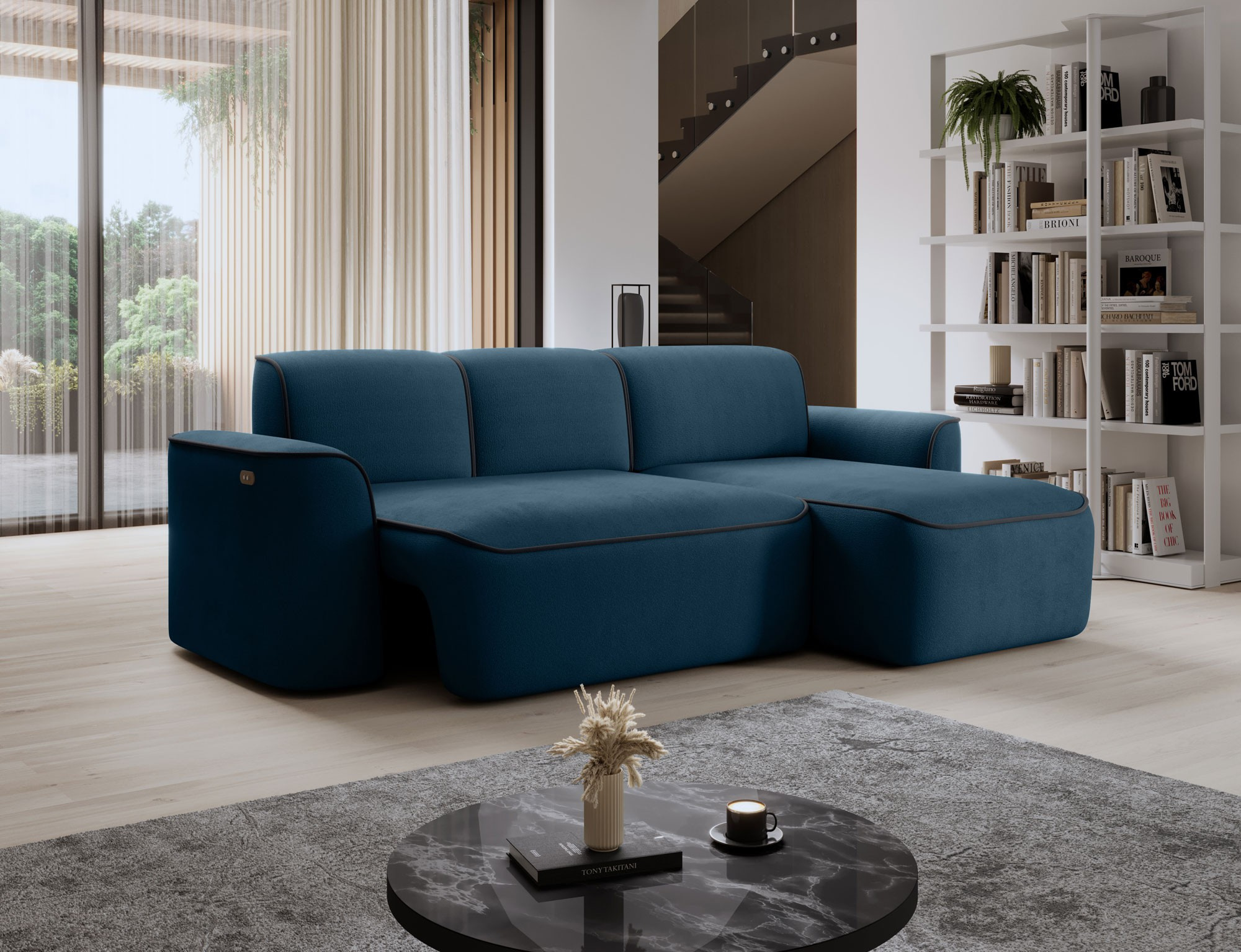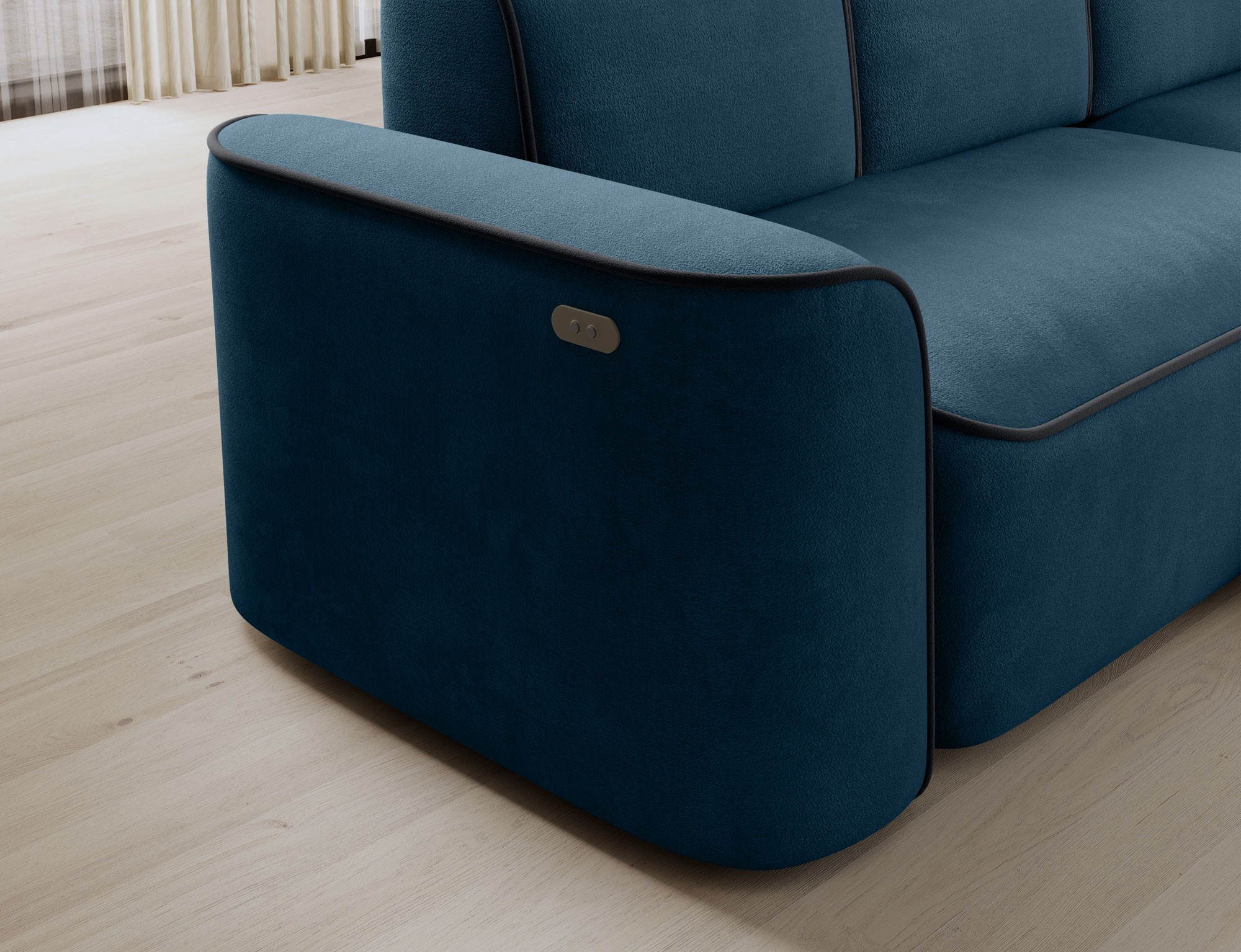 The Ume corner sofa is an elegant L-shaped corner sofa that impresses with its modern design and high-quality craftsmanship. The seat of the corner sofa is made of high-density HR foam HR Foam + T3030, which provides a comfortable and durable seating area. The backrest of the corner sofa is made of foam with density T2540 + T2315, which guarantees proper support for the back and comfort during relaxation. The Ume corner sofa is characterized by impressive dimensions of 287x190x88 cm. Thanks to the high-quality materials and solid construction, this corner sofa will provide many years of comfortable use and satisfaction. Additionally, the Ume corner sofa is equipped with an electronically retractable seat, making the use of this furniture even more comfortable and functional. With the electric mechanism, the seat position can be easily adjusted to individual preferences, allowing for customized seating positions tailored to the user's needs. This innovative addition makes the Ume corner sofa an excellent choice for people who value comfort and modern solutions in their interior.