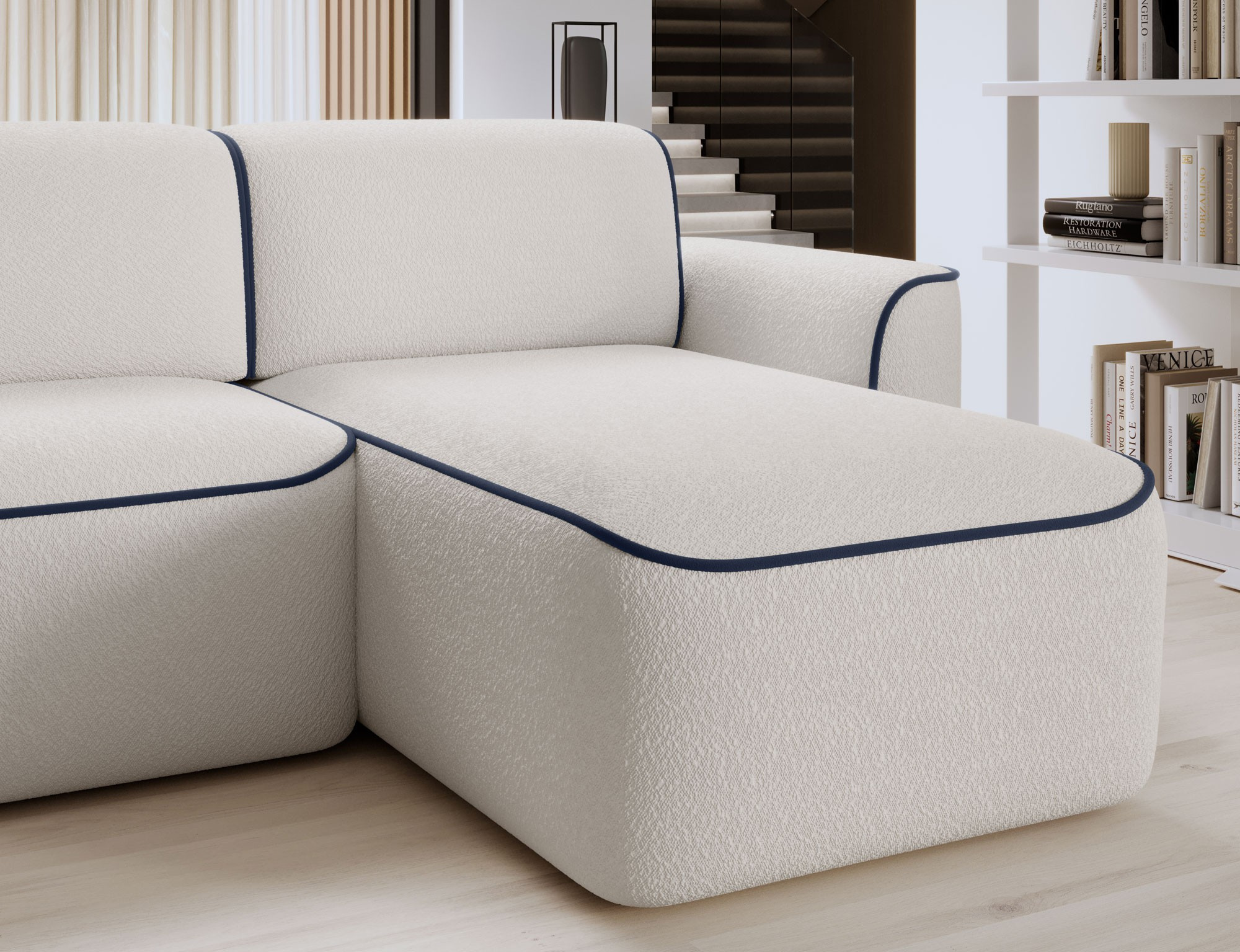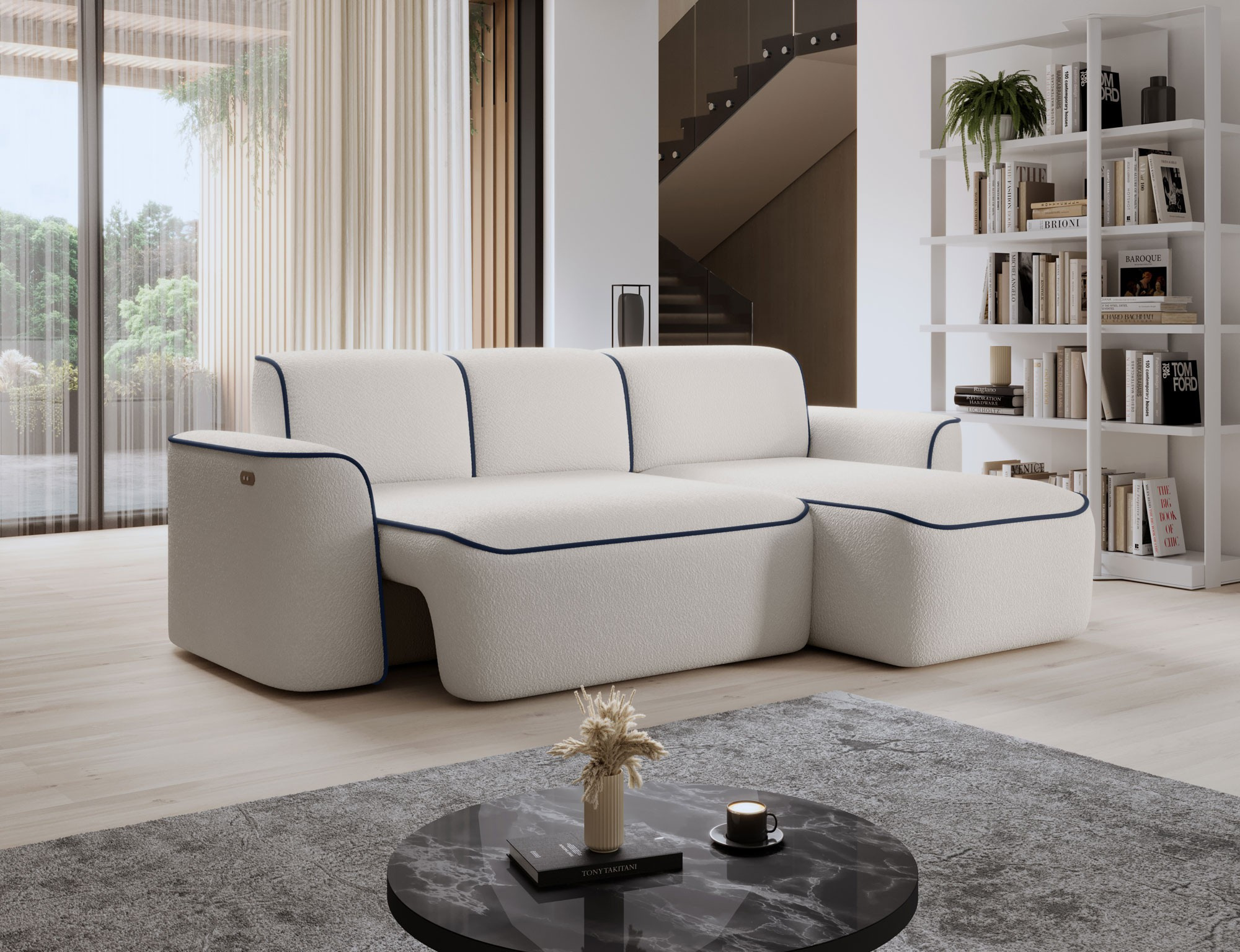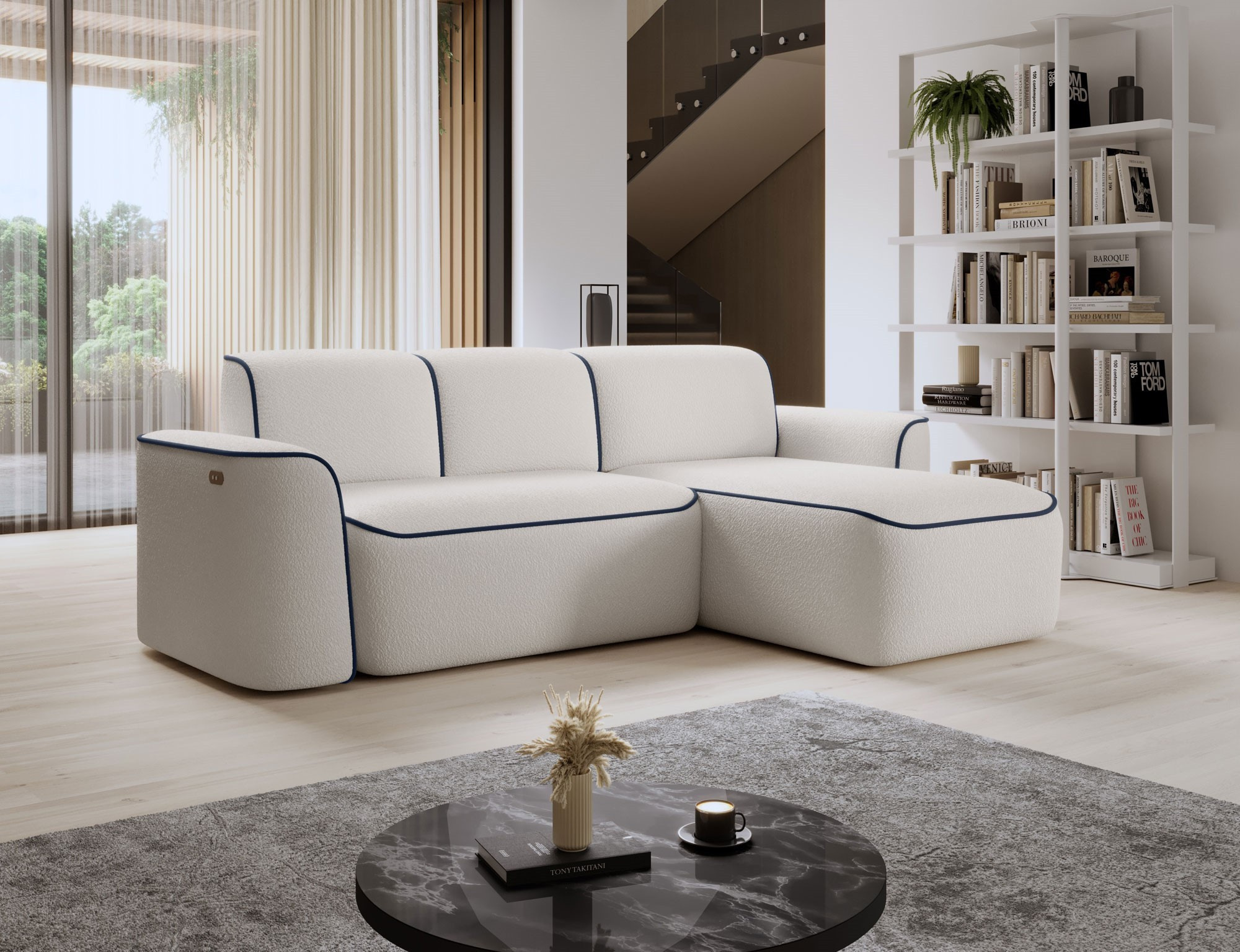 The Ume corner sofa is an elegant L-shaped corner sofa that impresses with its modern design and high-quality craftsmanship. The seat of the corner sofa is made of high-density HR foam HR Foam + T3030, which provides a comfortable and durable seating area. The backrest of the corner sofa is made of foam with density T2540 + T2315, which guarantees proper support for the back and comfort during relaxation. The Ume corner sofa is characterized by impressive dimensions of 287x190x88 cm. Thanks to the high-quality materials and solid construction, this corner sofa will provide many years of comfortable use and satisfaction. Additionally, the Ume corner sofa is equipped with an electronically retractable seat, making the use of this furniture even more comfortable and functional. With the electric mechanism, the seat position can be easily adjusted to individual preferences, allowing for customized seating positions tailored to the user's needs. This innovative addition makes the Ume corner sofa an excellent choice for people who value comfort and modern solutions in their interior.