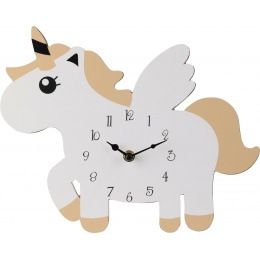 Unikornis alakú falióra. Egy AA elemmel működik (nem tartozék). Gyerekszobába vagy például óvodába. MDF anyag. Csomag méretei: 31x4,5x25,5cm