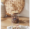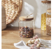 Elegáns üvegedény természetes akácfa fedéllel. Ideális különféle tárgyak, például fűszerek, teák vagy apró kiegészítők tárolására. A 13 cm-es magasságának köszönhetően a pohár kompakt, ugyanakkor tágas. Hosszúság: 10 cm Magasság: 10 cm Mélység: 10 cm Átmérő: 10 cm Anyag: Boroszilikát üveg, szilikon, akác