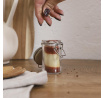 Fedezze fel az eleganciát és a funkcionalitást egyben a 70 ml-es üveg edényünkkel. Ez a gyönyörű üveg, amely természetes akácfa fedéllel van ellátva, ideális megoldás apró tárgyak, fűszerek, teák vagy házi lekvárok tárolására. Kiváló minőségű üvegből készült, a pohár tartósságával és esztétikus megjelenésével tűnik ki, míg az akácfa fedél rusztikus bájt kölcsönöz neki. A fedél szorosan záródik, ami hatékonyan megőrzi a tárolt termékek frissességét. A minimalista dizájn biztosítja, hogy a pohár tökéletesen illeszkedjen bármely konyhába, irodába vagy belső térbe. Ideális mindennapi használatra és ajándéknak is szeretteink számára, ez az aranyos üveg ötvözi a funkcionalitást az esztétikával, és környezetbarát választás. A termék hossza (cm): 9 A termék magassága (cm): 9 A termék mélysége (cm): 4,5 Átmérő (cm): 11 A termék súlya (g): 110 Anyag: Üveg, szilikon, akácfa, rozsdamentes acél