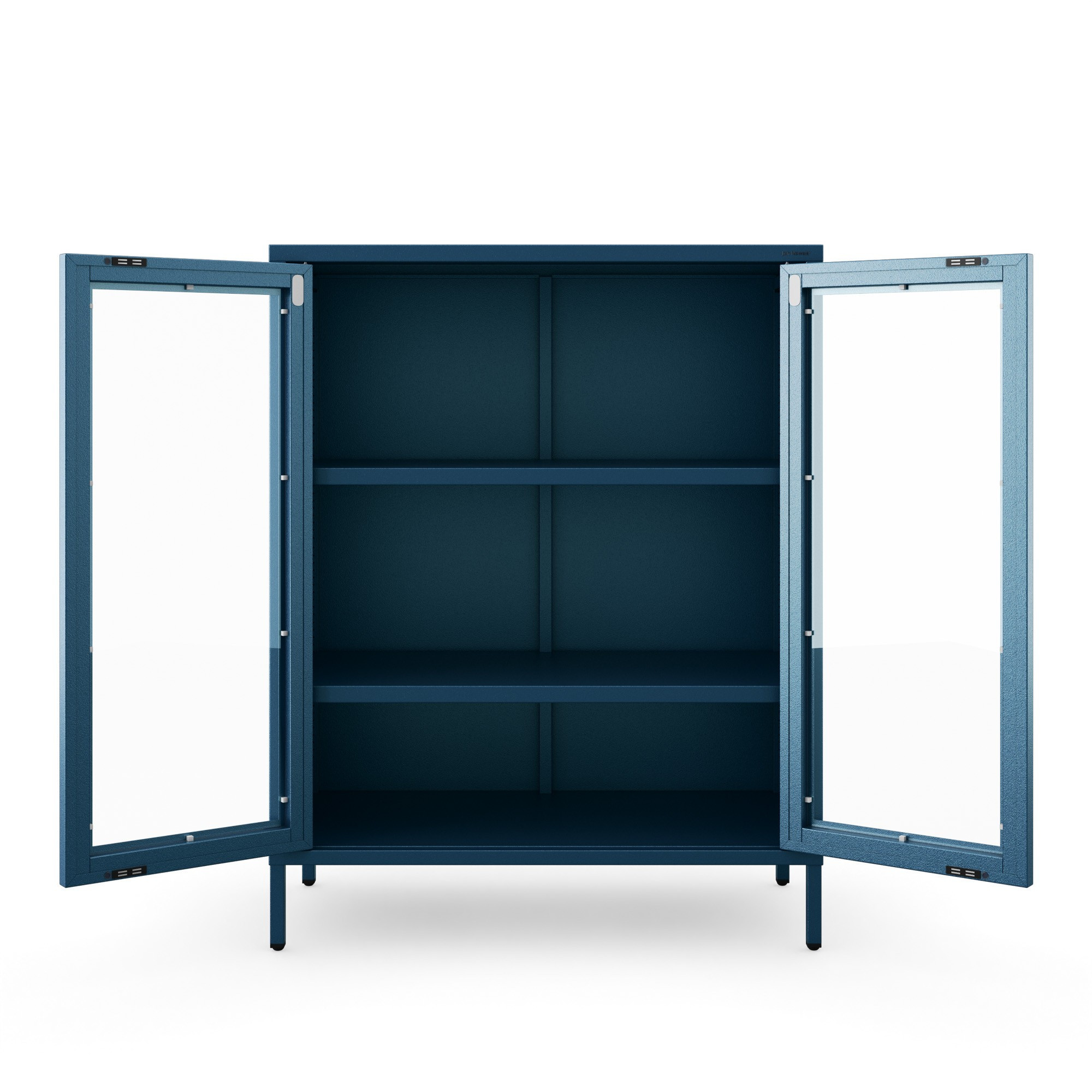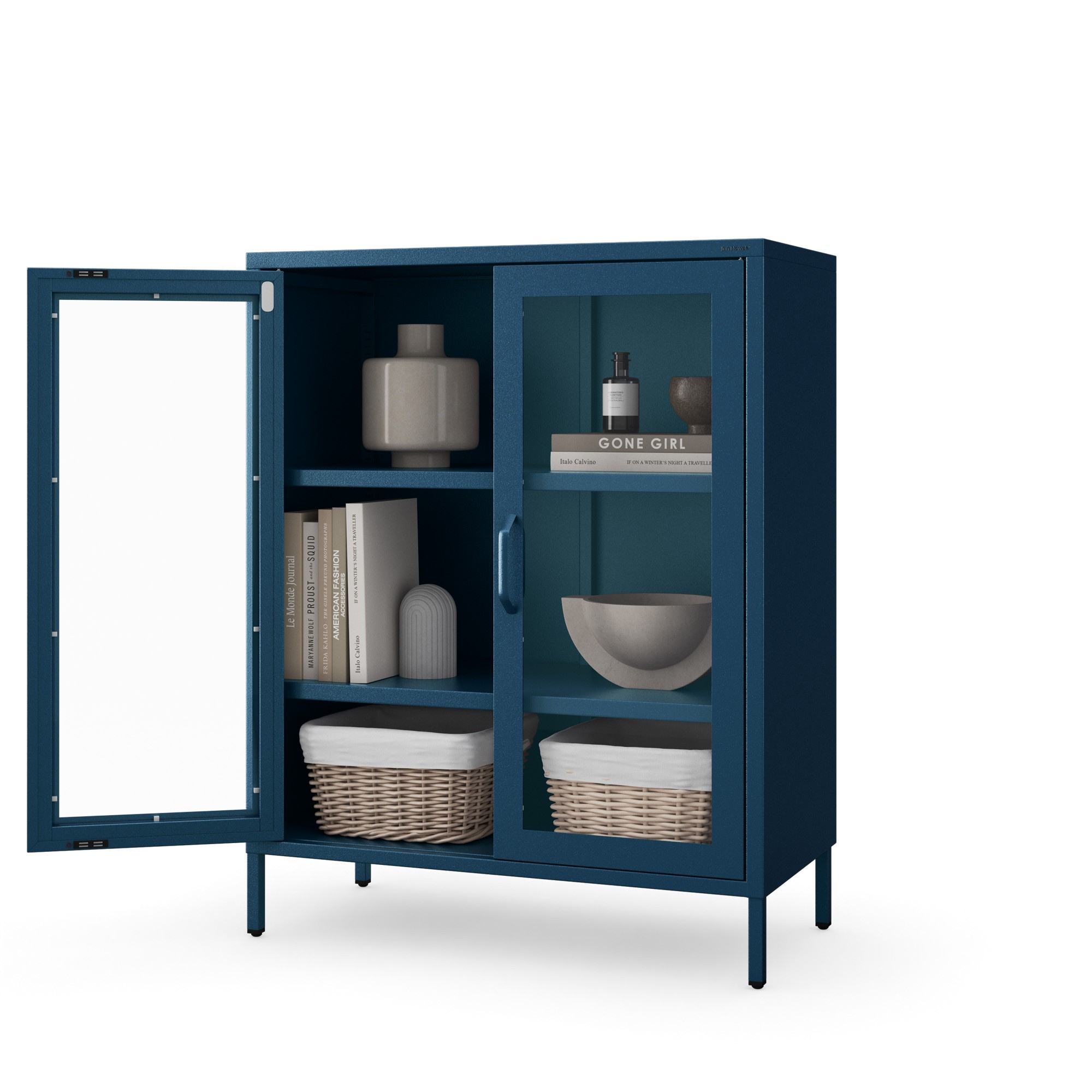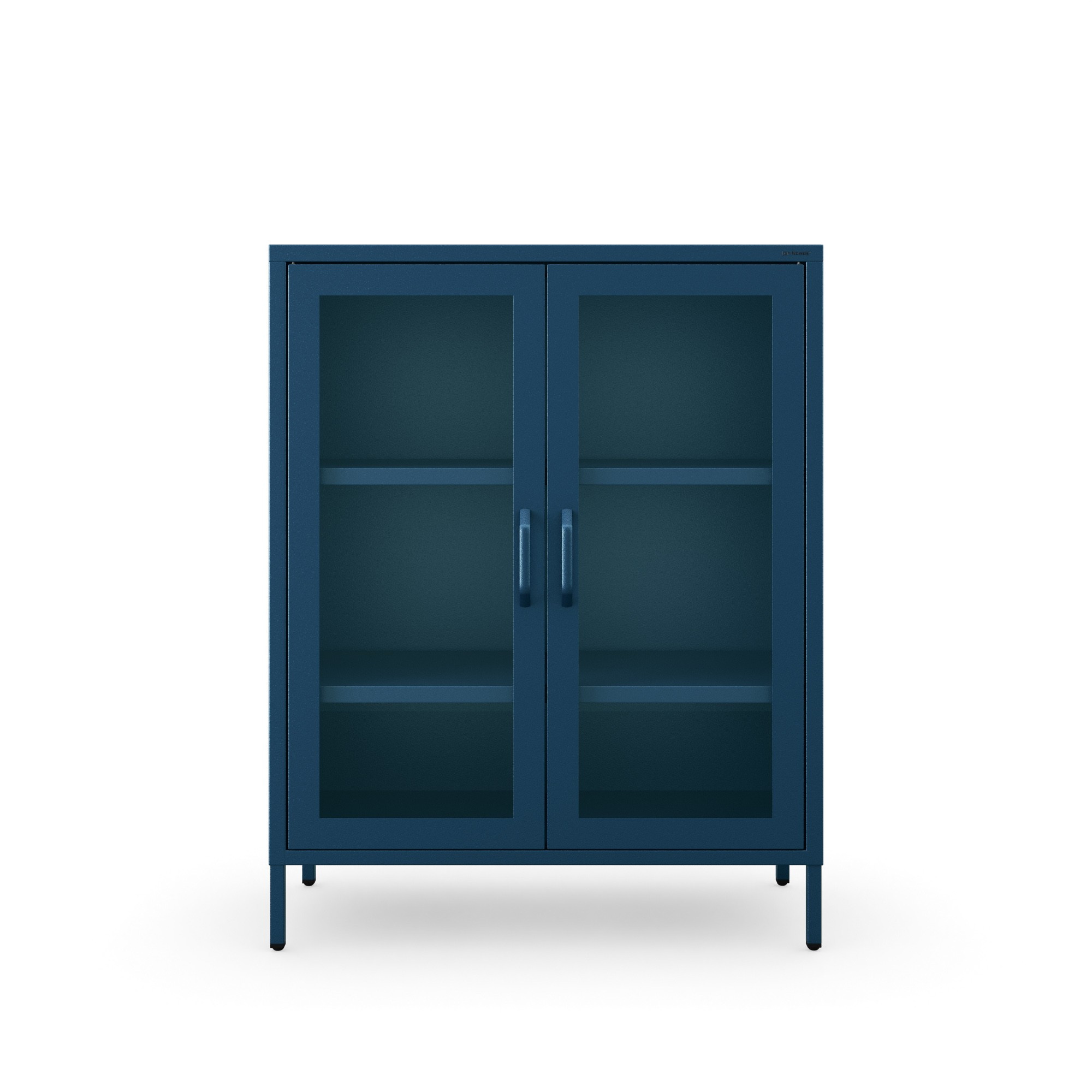 Üvegezett alacsony vitrin sötétkék: Modern GINA, 800 x 1015 x 400 mm